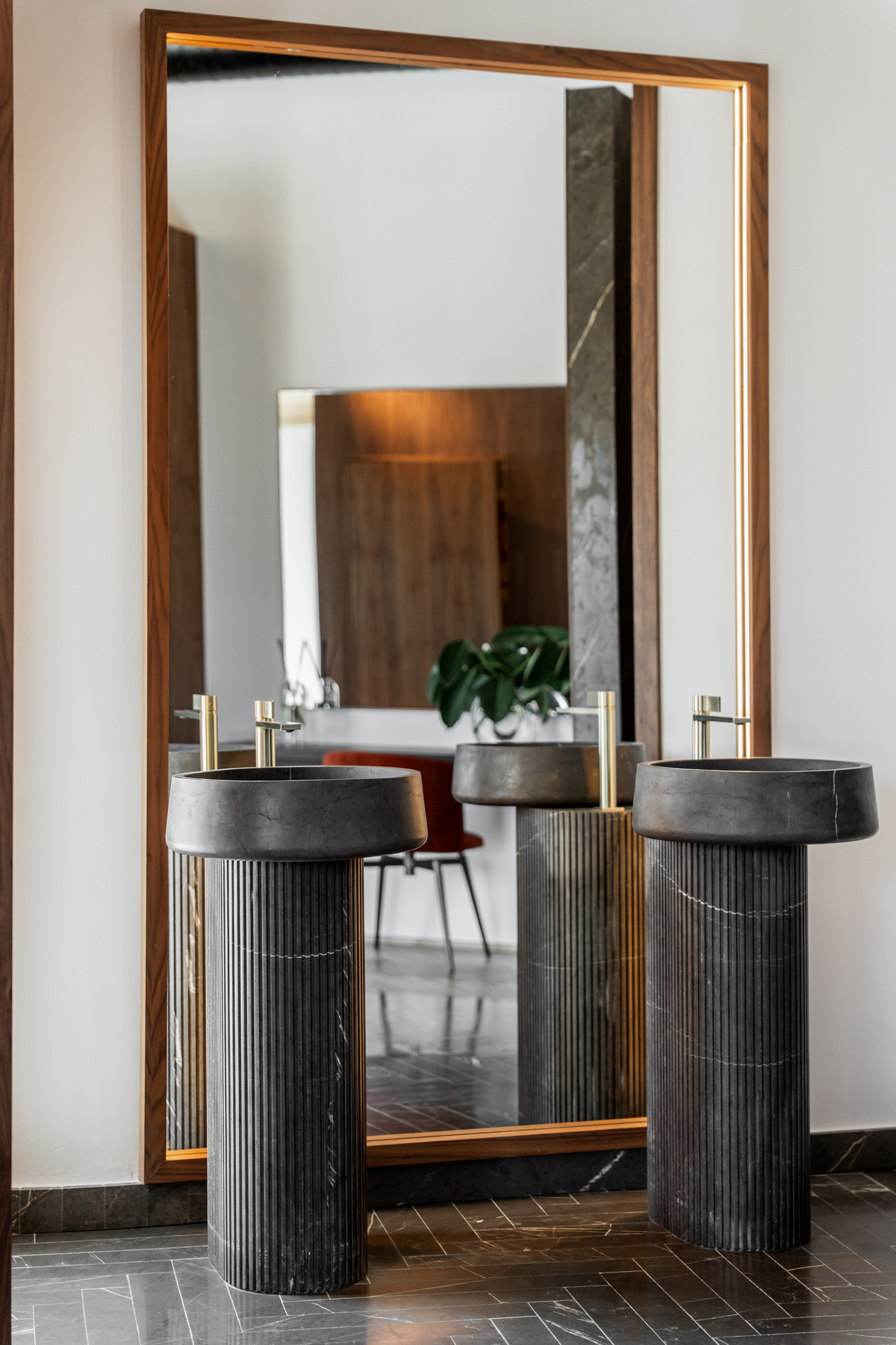 This is not your average Golf Valley villa. It has been redesigned with a clear architectural direction, where proportions, materials and flow have been carefully selected. From the entrance, the detailing is evident: herringbone oak flooring, bespoke walnut joinery, fluted cabinetry and dark-veined marble, all brought together with consistency rather than contrast for effect.
