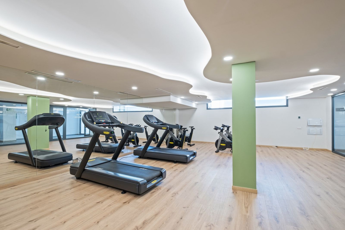 Residents benefit from excellent communal facilities, including an outdoor swimming pool, indoor pool, fully equipped gym, sauna, and a relaxing turquoise bath area.