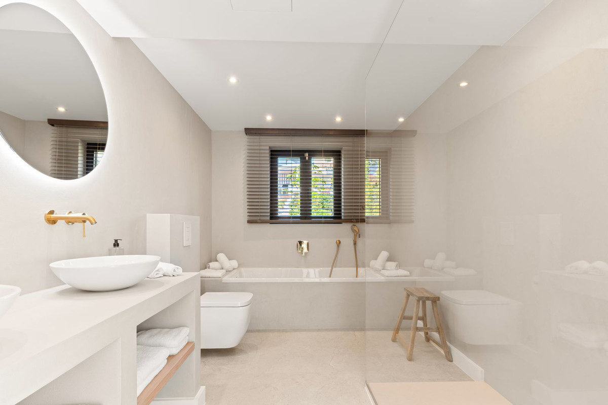 Accessed via a private driveway, the property immediately conveys warmth, exclusivity, and refined comfort. Inside, the villa offers four spacious en-suite bedrooms and a complete high-quality renovation by well known local developer, featuring a full redesign, reconfiguration, and a sophisticated, timeless interior.