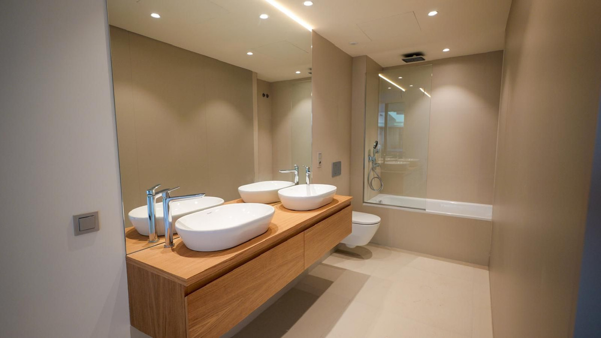 L'appartement comprend 2 chambres spacieuses et 2 salles de bains modernes, ainsi qu'un espace de vie ouvert et lumineux et une cuisine design entièrement équipée avec des appareils haut de gamme.