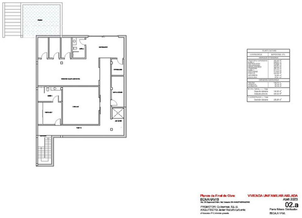On the right side of the entrance, two en-suite bedrooms and a garage, capable of accommodating 3-4 cars and a golf buggy, are located. Noteworthy is the garage's glass wall, allowing you to admire your collection from outside.