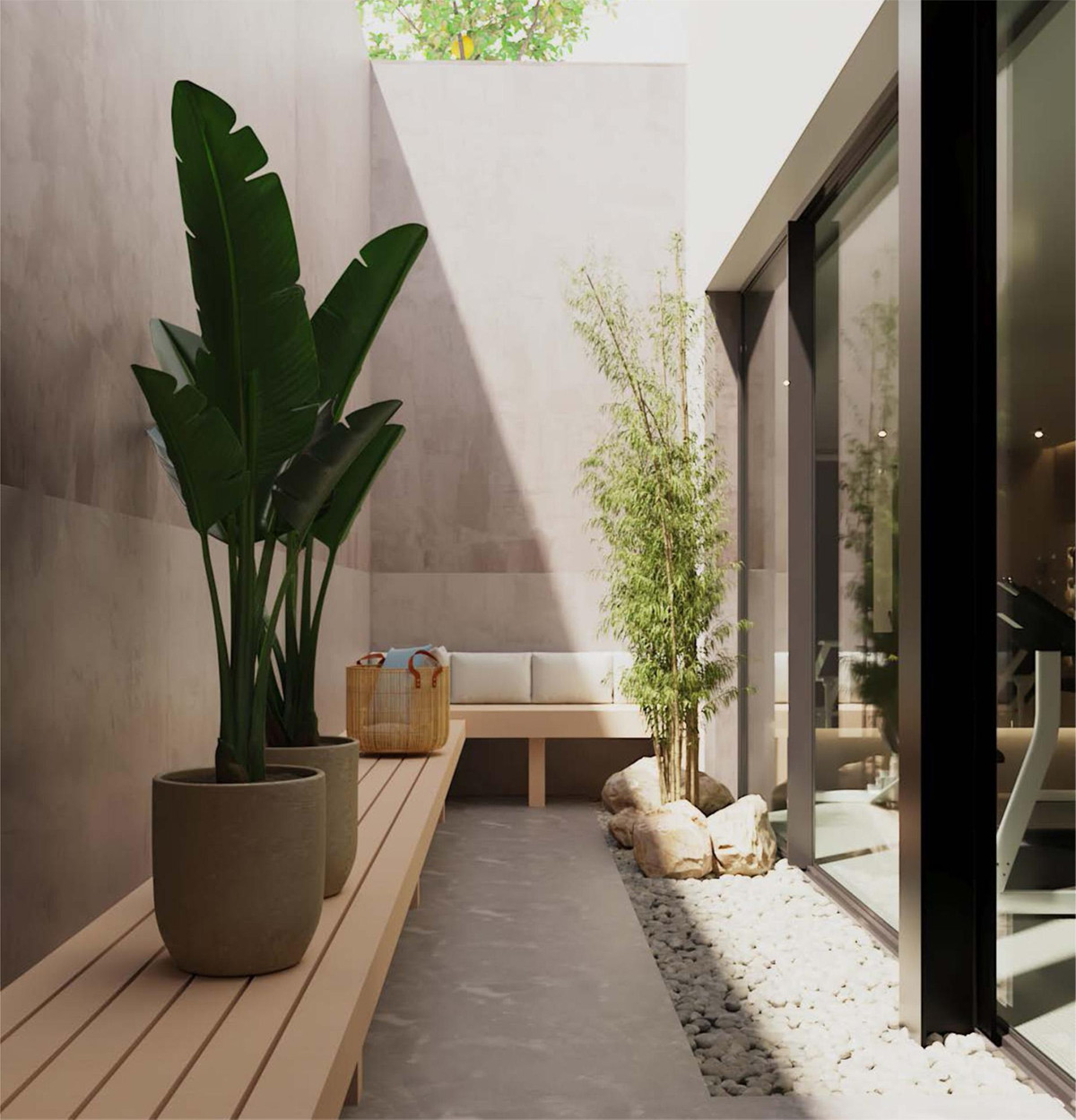The basement level is dedicated to well-being and entertainment. It houses a fully equipped gym with sauna and shower and access to a private English patio, as well as a home cinema, guest toilet, laundry and storage rooms, and a spacious garage designed to accommodate multiple vehicles.