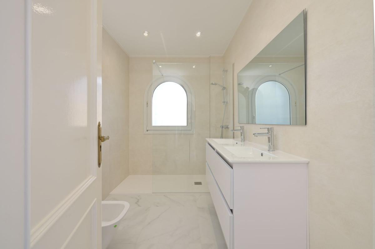 On the first floor there are THREE further bedrooms with 2 en-suite bathrooms and fitted wardrobes, and two have access to a very spacious, private and sunny terrace with sea views.