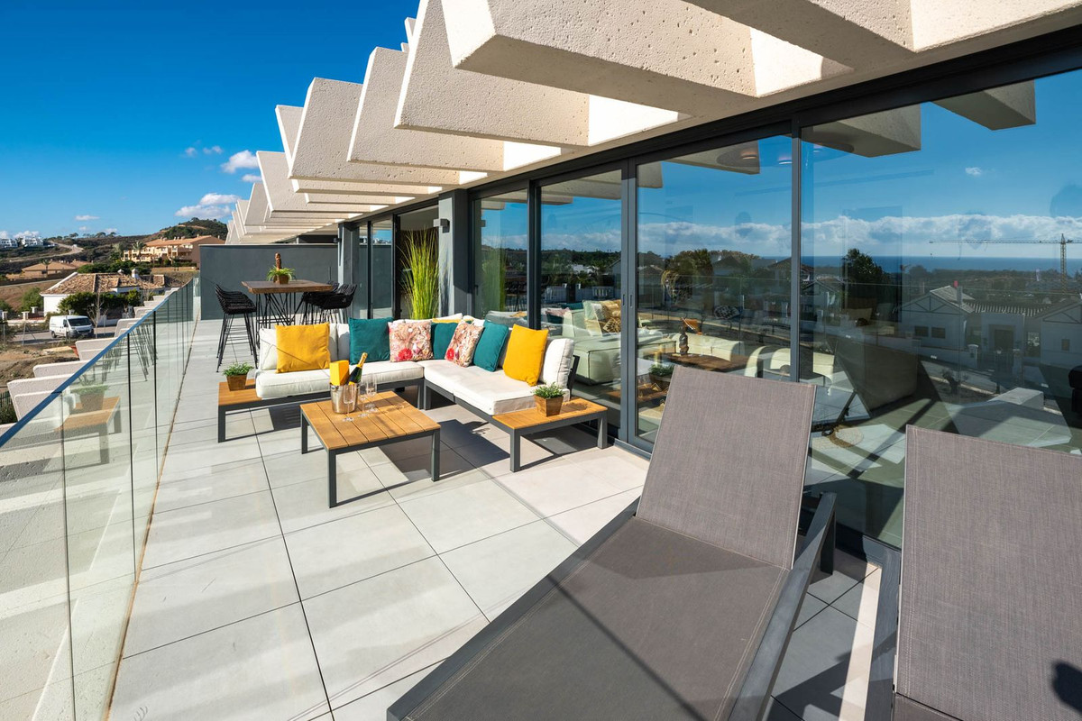 This newly built 250m² south-facing apartment blends modern design with relaxed Boho charm. Featuring 3 spacious bedrooms, each with its own ensuite bathroom, and a 70m² terrace offering breathtaking 180° sea views of Gibraltar and the Atlas Mountains, this is a rare find.