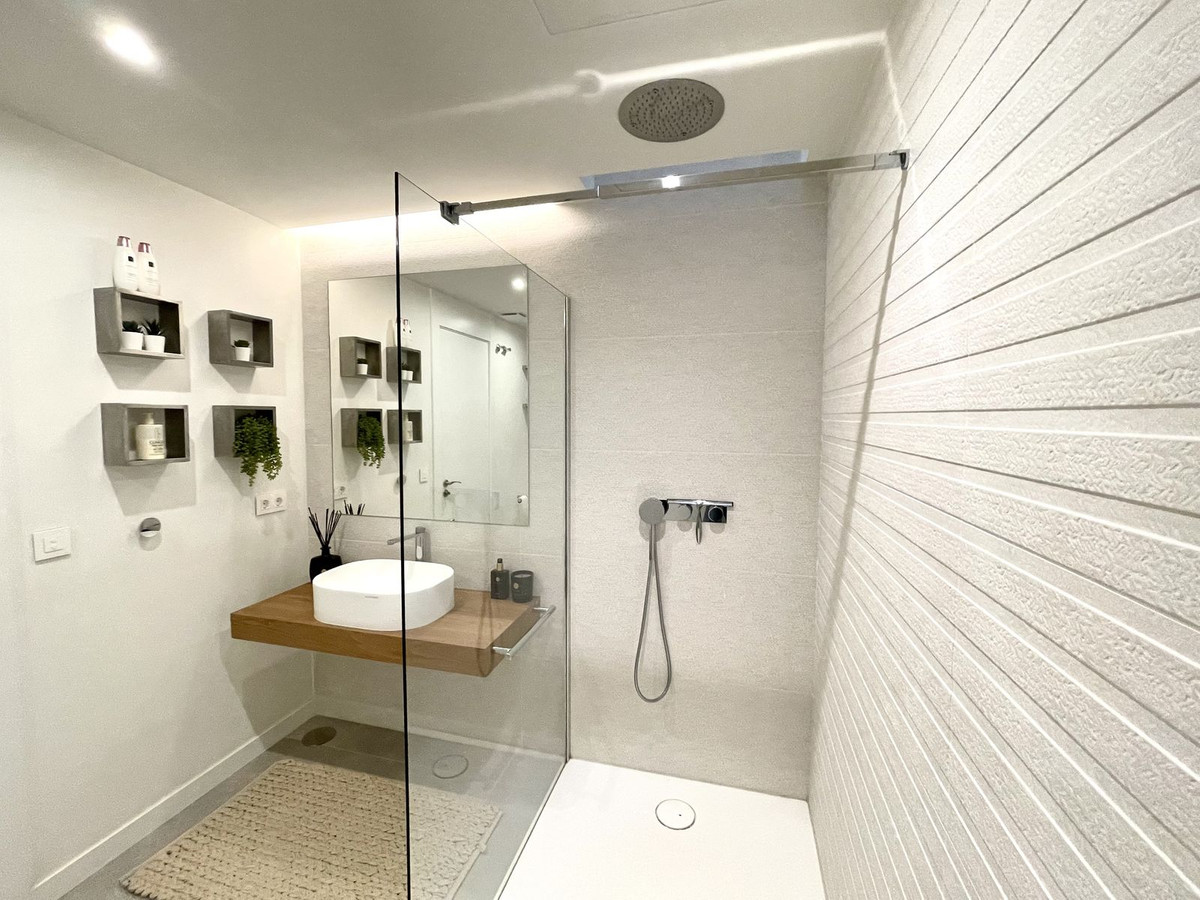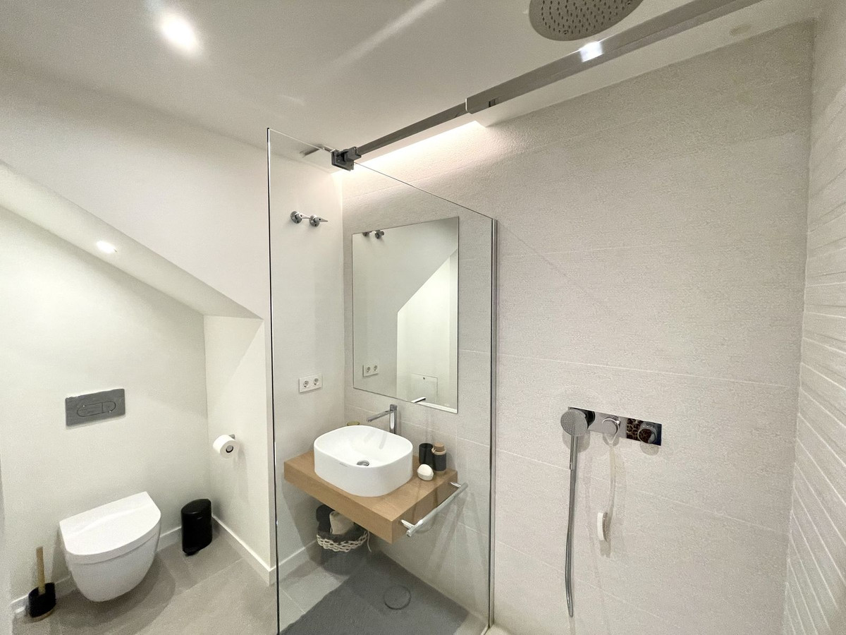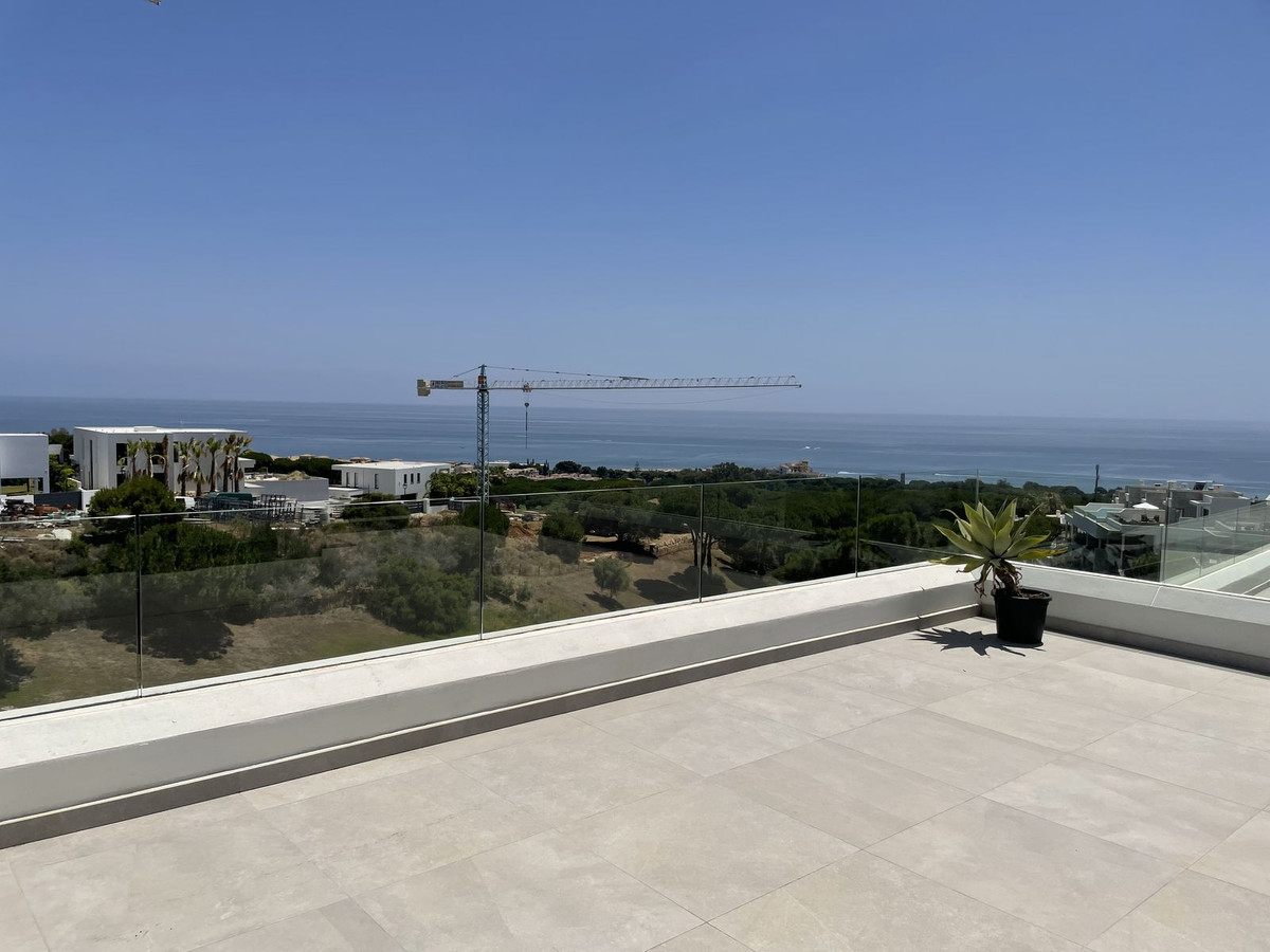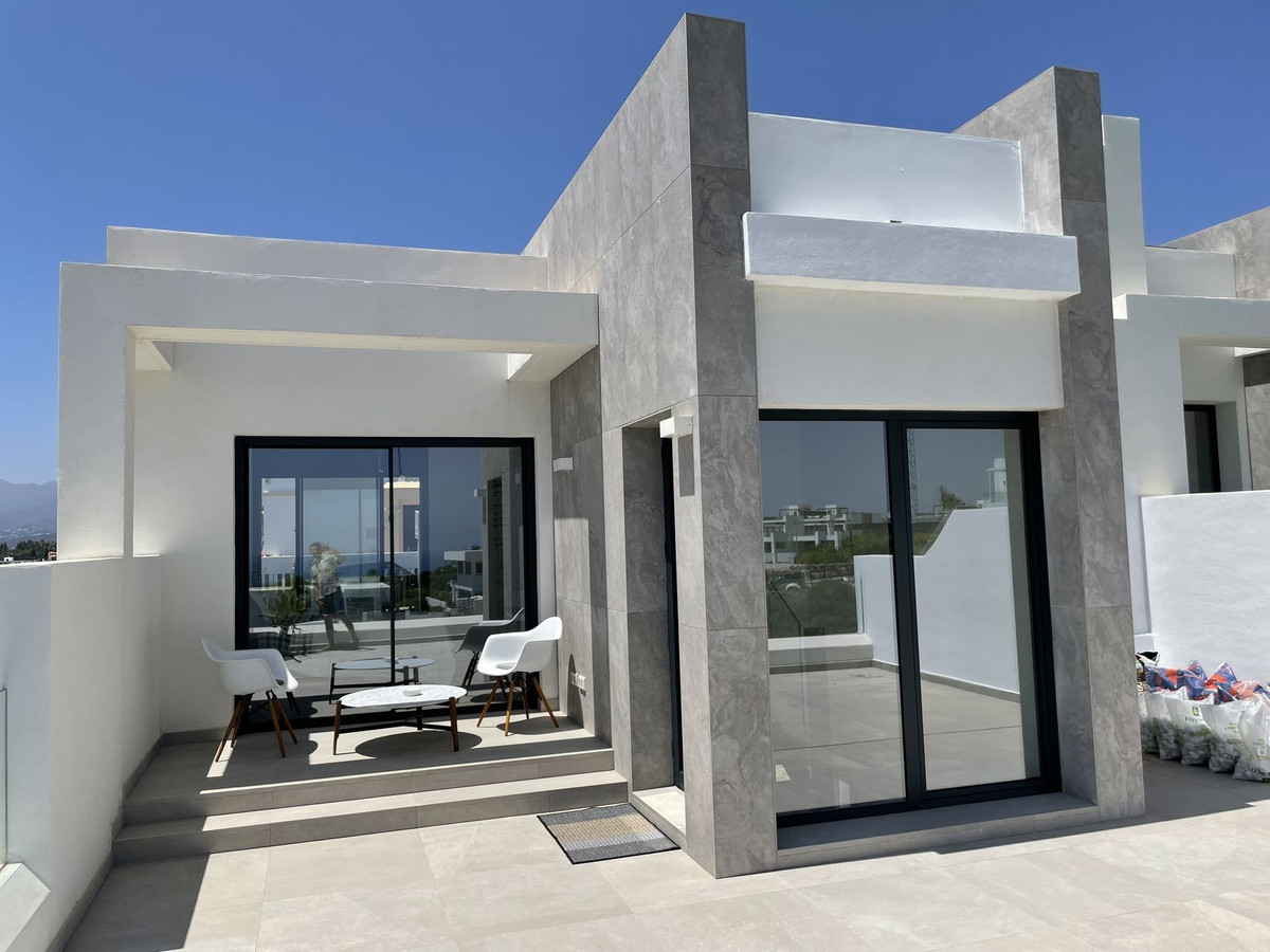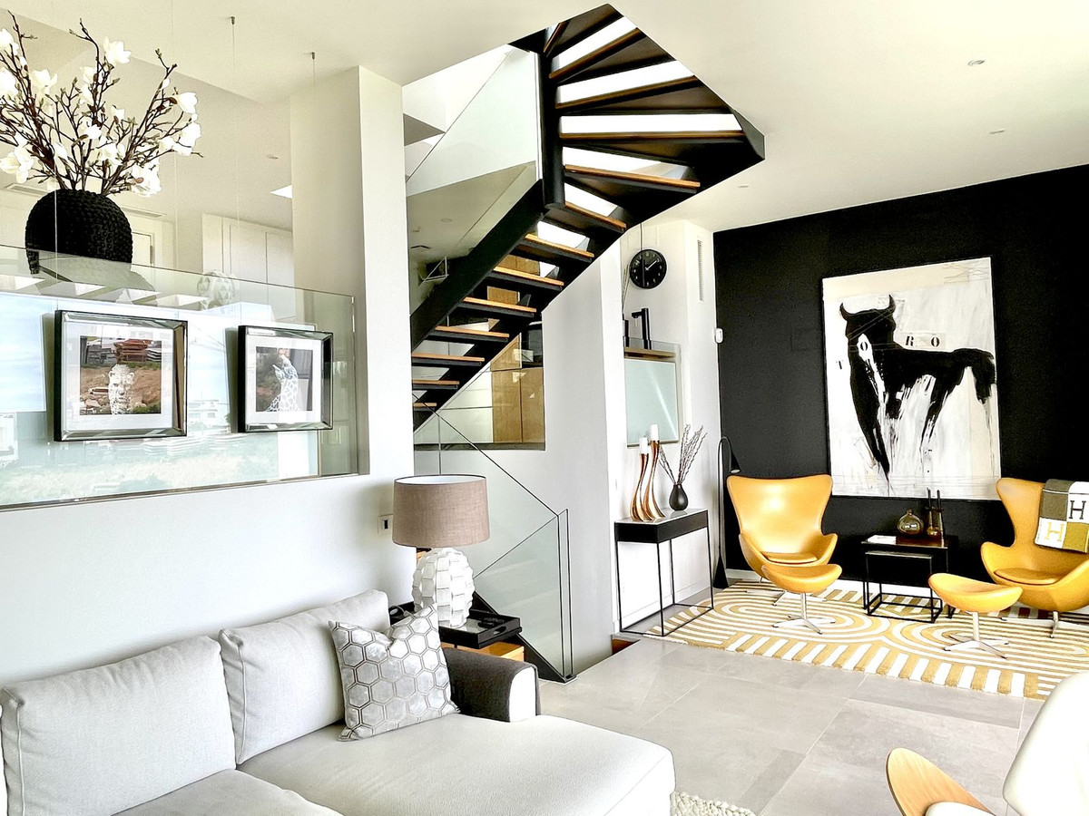 The Cape is an innovative residential project in Cabopino. This seaside wonder is located in the municipality of Marbella (Malaga), one of the most beautiful spots on Costa del Sol. The house is situated in a frontline golf, has 3 bedrooms all with en-suites and powder room, spacious terrace offers wonderful views of the Mediterranean Sea. There is a private swimming pool with sun terrace as well as private garden to enjoy the brightness of the region. The living room is designed to ensure wellbeing and offers ease and elegance with the hight of the ceiling of 3.60 metres.The architectural feature offers a very spacious and luminous space with stunning sea views to guarantee you a place of repose and leisure where to enjoy one of the most privileged areas of the world. The kitchen has been perfectly equipped with appliances NEFF, a brand that specializes in state of the art build-in kitchen appliances, Porcelanosa flooring, bathrooms and kitchen countertop with one piece integrated sink and top of the line faucets.Many upgrades have been done, extension of the master bedroom, laundry room with integrated sink and top of the line washer/dryer, exclusive lighting design, luxury automated window covering, wood paneling in the living room and bedroom, privacy glass curtain installed on the terrace separation, kitchen cabinets upgraded, tiled front porch, outdoor faucets installed, electric car charger installed next to the parking spot, energy efficient climate control by Aerotermia Daikin, in-floor heating through out the house.Must see to appreciate everything that this house has to offer.
