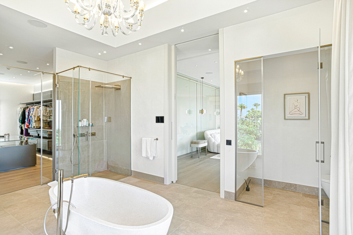 An architecturally unique, south-facing property located in the exclusive gated community of Sierra Blanca on Marbella’s prestigious Golden Mile. This brand-new mansion offers exceptional design, panoramic sea and mountain views, 24-hour security, and is just minutes from world-class beaches, golf courses, international schools, fine dining, and the glamour of Puerto Banús. Designed to impress, the villa blends bold contemporary lines with timeless European craftsmanship. Luxurious finishes include premium natural stone flooring, imported French limestone columns, custom Rimadesio wardrobes, wood doors, and German-engineered fittings.