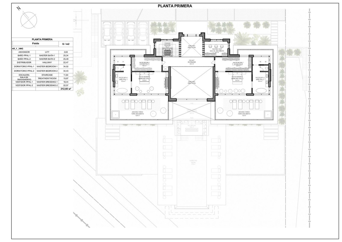 The villa features six spacious bedrooms, each with its own en-suite bathroom, as well as a guest toilet, ensuring comfortable accommodation for family and guests. The interiors are meticulously appointed with high-end finishes, including porcelain flooring, fitted wardrobes, and glass doors, while the fully equipped kitchen and separate utility kitchen provide versatile culinary spaces. The living and dining areas open onto both covered and uncovered terraces, seamlessly integrating indoor and outdoor spaces. The property is fully accessible via elevator and is equipped with home automation technology, underfloor heating throughout, individual air conditioning units, and aerothermal systems for year-round comfort.