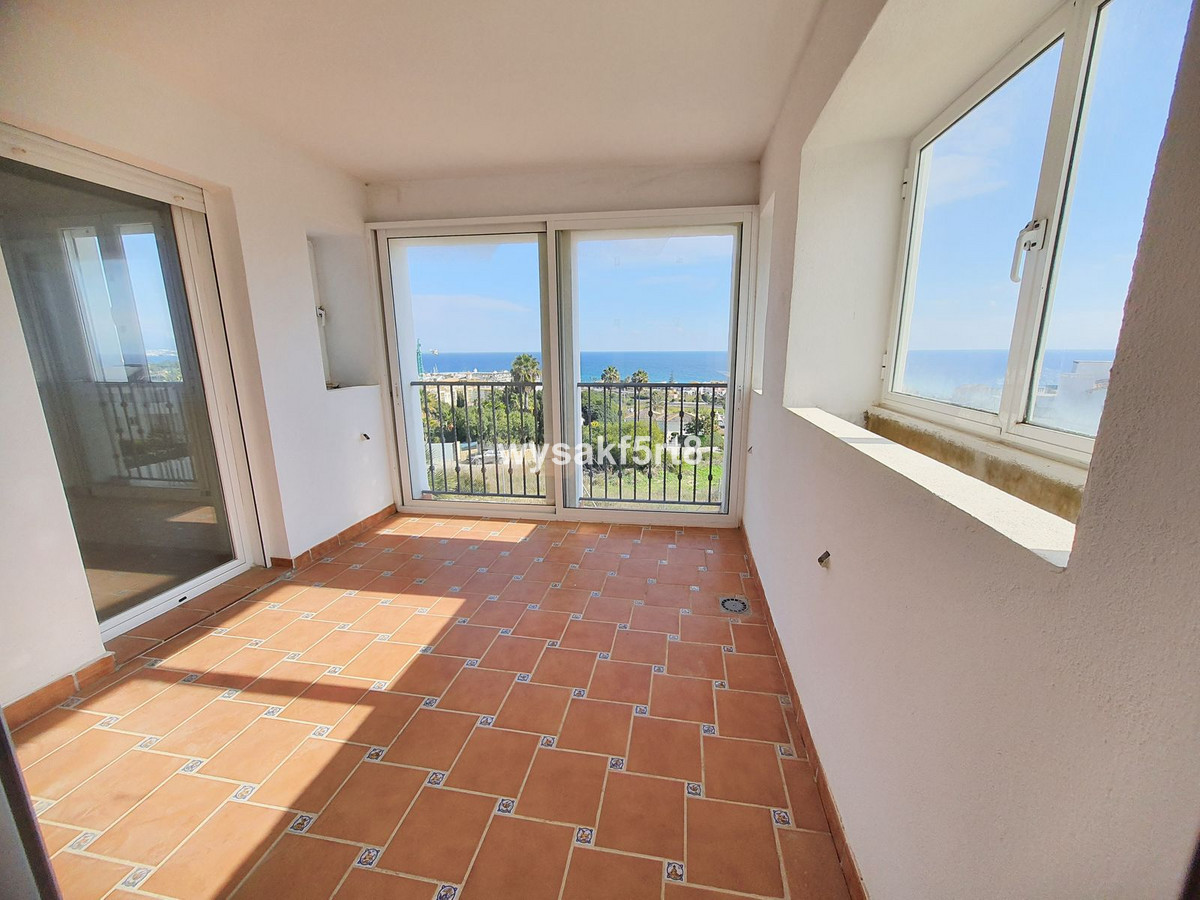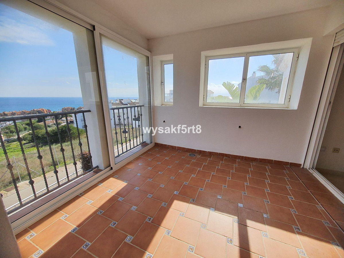 This middle-floor property includes a spacious and bright living room from which you access the 12 m² covered terrace with fantastic Southeast views of the Mediterranean Sea, golf course, and Duquesa port. Two bedrooms, 2 bathrooms. Both bedrooms offer plenty of space and a wardrobe. The master bedroom has an en-suite bathroom and access to the main terrace. There is an additional bathroom next to the second bedroom. Large equipped kitchen. Preinstallation of hot & cold air-conditioning, exterior parking.