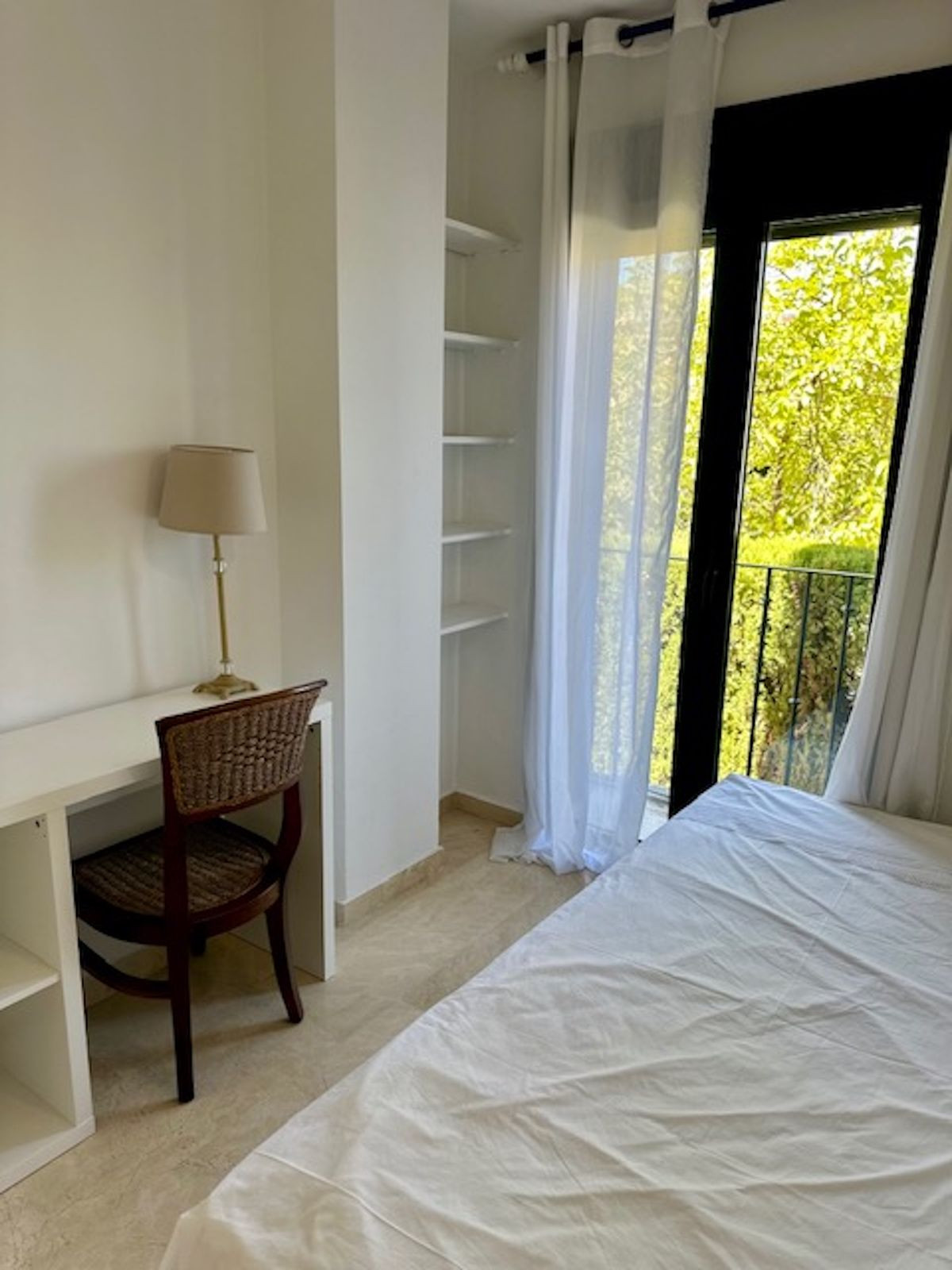 The third bedroom is slightly smaller and includes a study area. Here, we have another full bathroom shared with the two bedrooms (the home has two full bathrooms and a guest toilet).