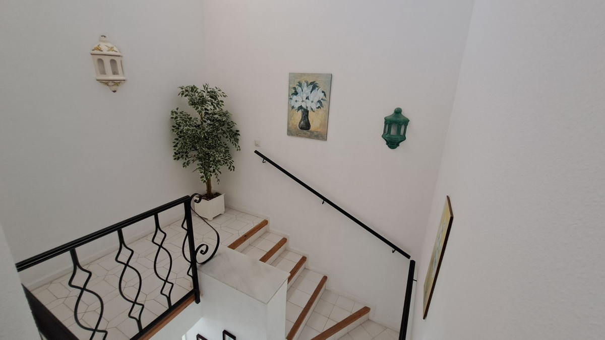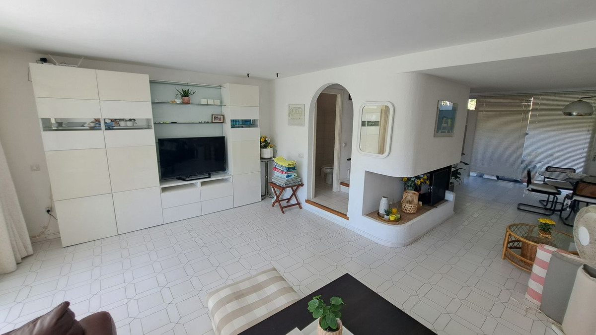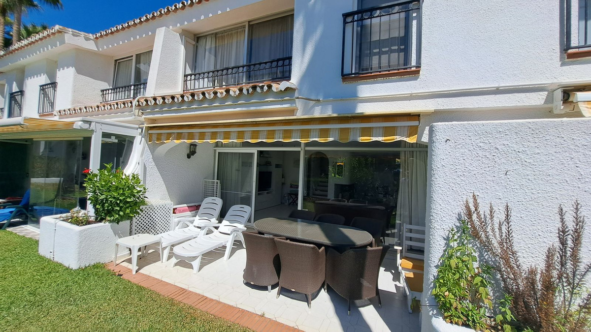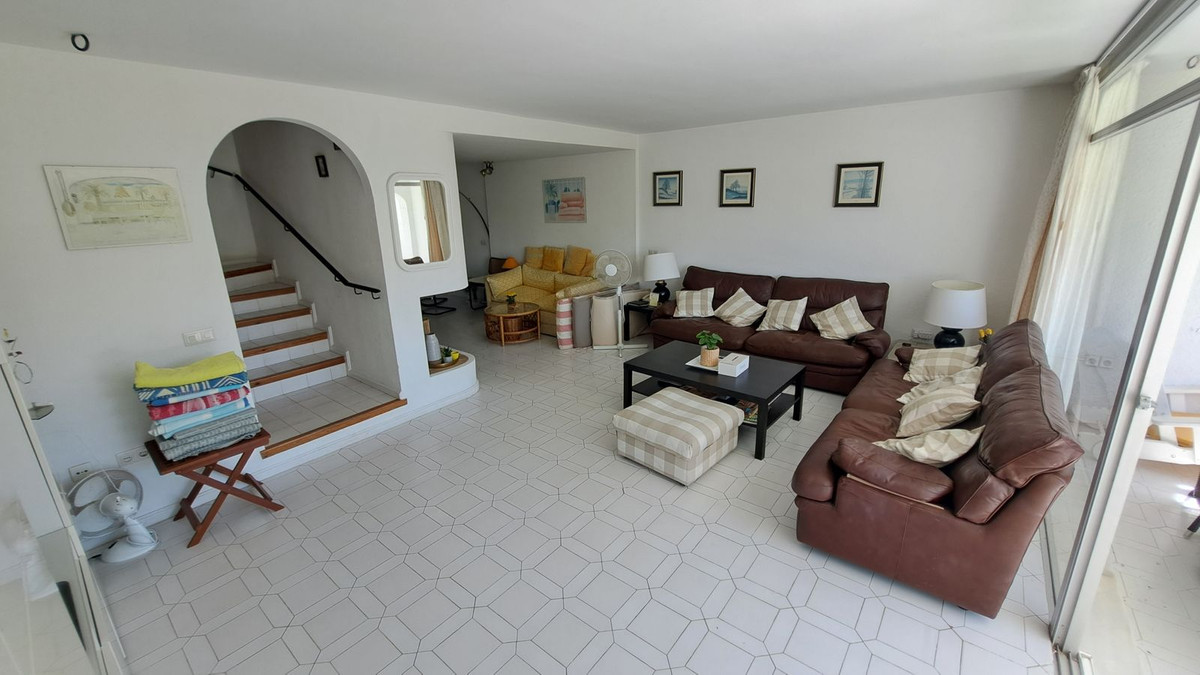 We are delighted to offer this lovely duplex town house in the very convenient location of Miraflores Resort. The property comprises:- Spacious lounge with open fireplace and dining area leading onto large terrace, fully fitted kitchen, master bedroom with en-suite bathroom and dressing room, two further bedrooms, family shower room and cloakroom. Sunny orientation. Lovely communal swimming pool with a bar and restaurant and sub-tropical gardens. Further features includes: additional patio, 24 hours security. Being sold fully furnished. Walking distances to the beach and bus stop.