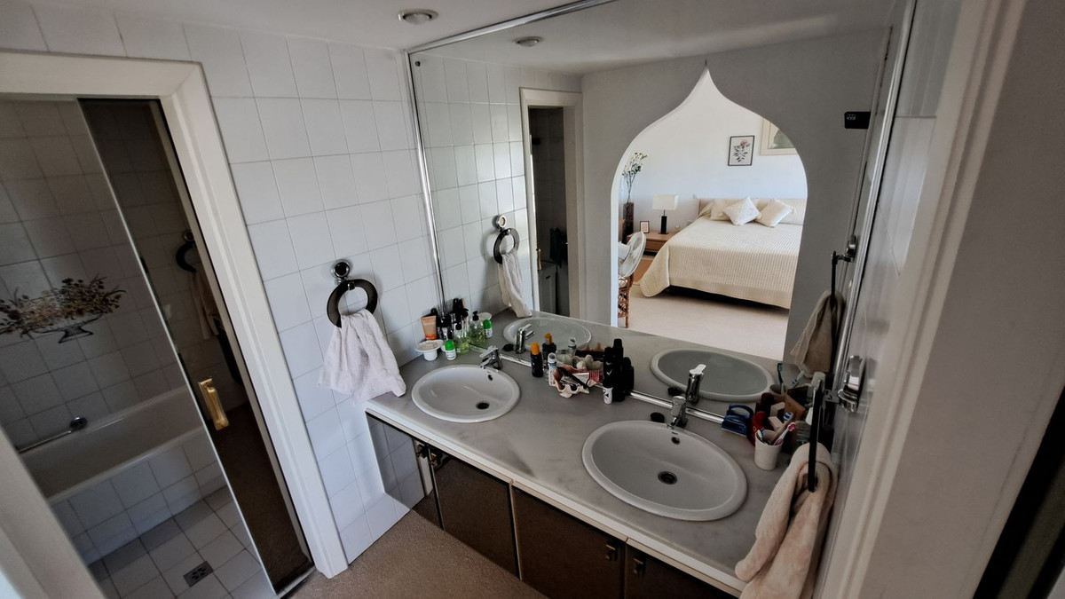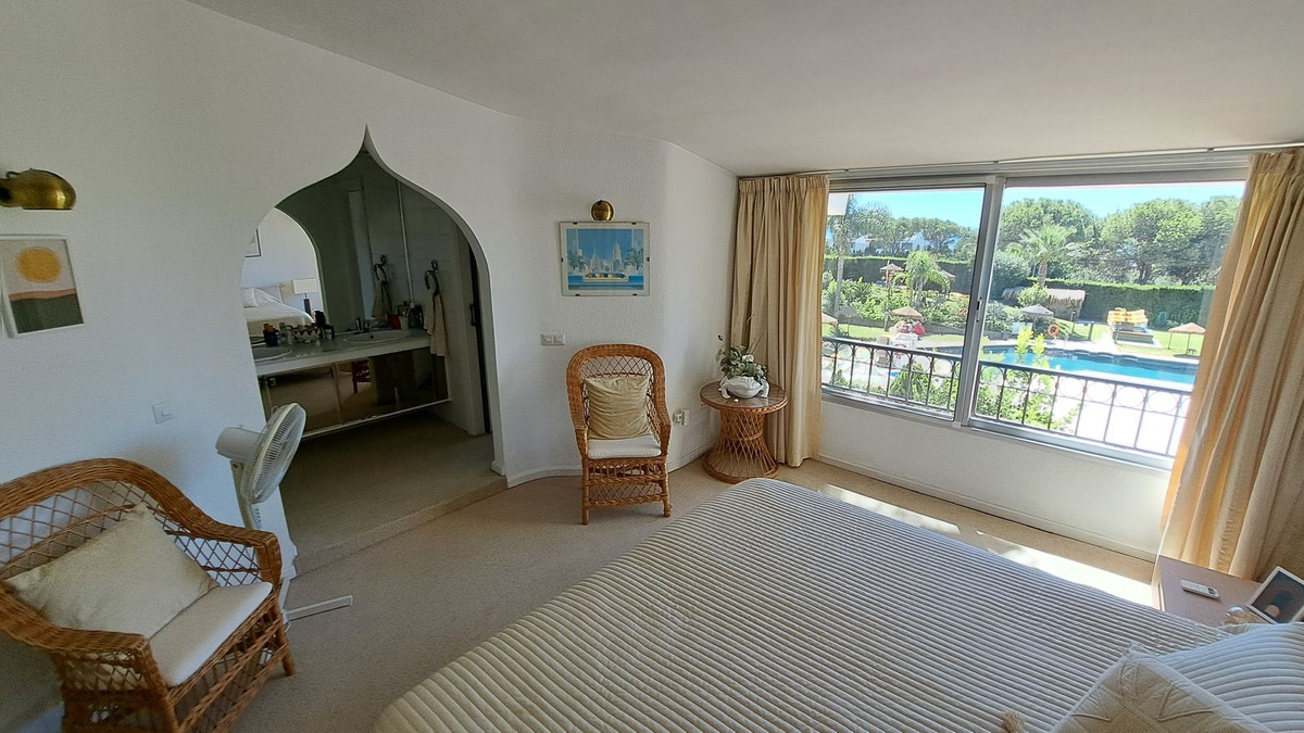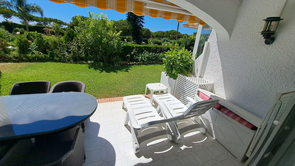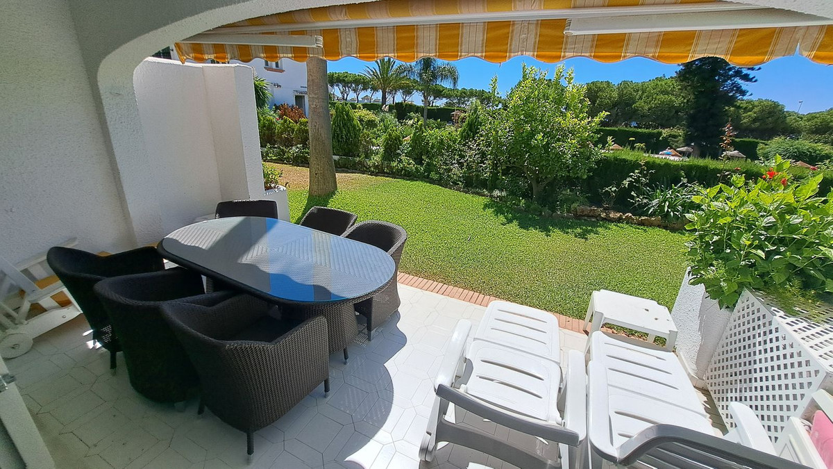 We are delighted to offer this lovely duplex town house in the very convenient location of Miraflores Resort. The property comprises:- Spacious lounge with open fireplace and dining area leading onto large terrace, fully fitted kitchen, master bedroom with en-suite bathroom and dressing room, two further bedrooms, family shower room and cloakroom. Sunny orientation. Lovely communal swimming pool with a bar and restaurant and sub-tropical gardens. Further features includes: additional patio, 24 hours security. Being sold fully furnished. Walking distances to the beach and bus stop.