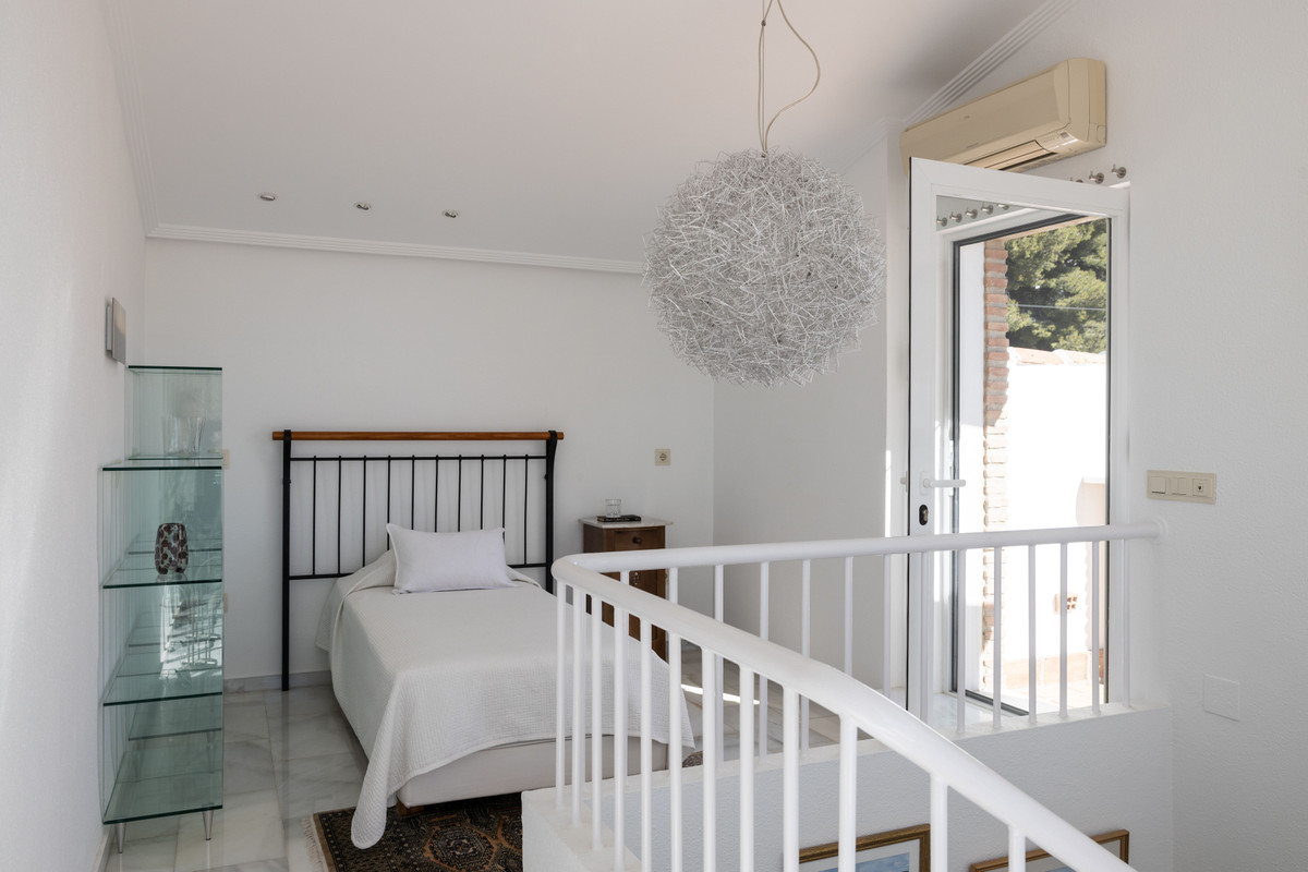 Immerse in the enchanting landscape of Mijas Pueblo, where the sun-kissed coast meets the majestic mountains, in this stunning villa. Offering an exceptional blend of luxury and comfort, this home has four bedrooms, three bathrooms, a large living area with a cozy fireplace. The kitchen area is a perfect combination of space and functionality. And when it is time for al fresco dining with family and friends, there could not be a better spot than the picturesque inner patio with lemon and mandarin trees. Step up to the sun roof terrace, and you'll be greeted with a breathtaking vista of the sea and mountains. Enjoy the warmth of the sun as you shower in the outdoor shower or lounge with a good book.