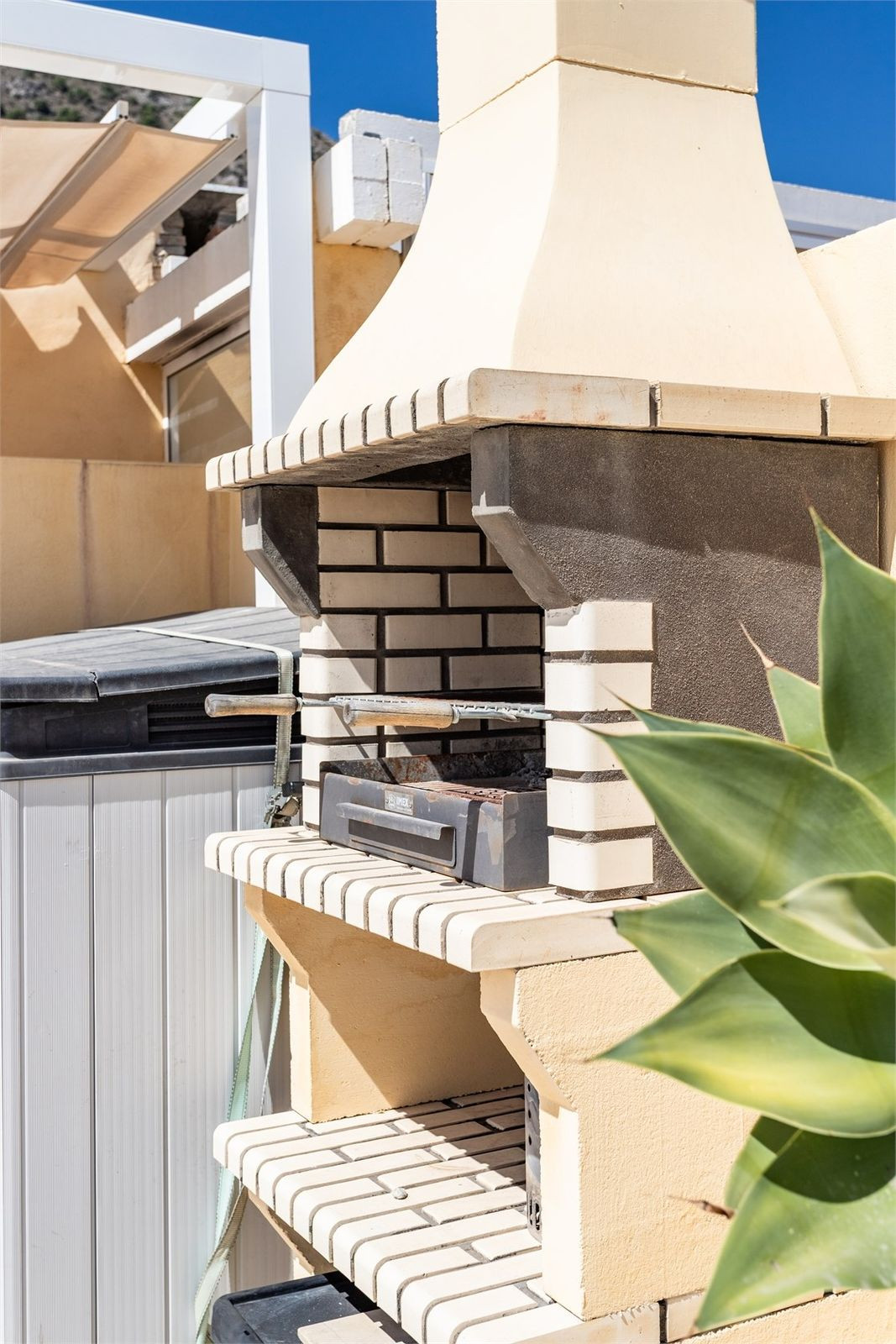 From the spacious south-facing terrace, you are treated to panoramic views that impress just as much by day as by night. From here, a private staircase leads up to the generous rooftop terrace, which together with the lower terrace offers a total of 80 m² of outdoor space. Here you will find an inviting lounge area, a dining space, a barbecue, and a refreshing outdoor shower. With electricity and water already prepared, there is also great potential to create an outdoor kitchen or perhaps install a jacuzzi.