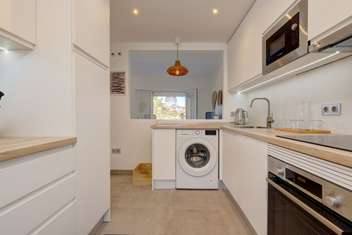 Upstairs there are 2 full bedrooms and a smaller 3rd bedroom and a full shared bathroom. The main bedroom has it's own private terrace and sea and golf views.
