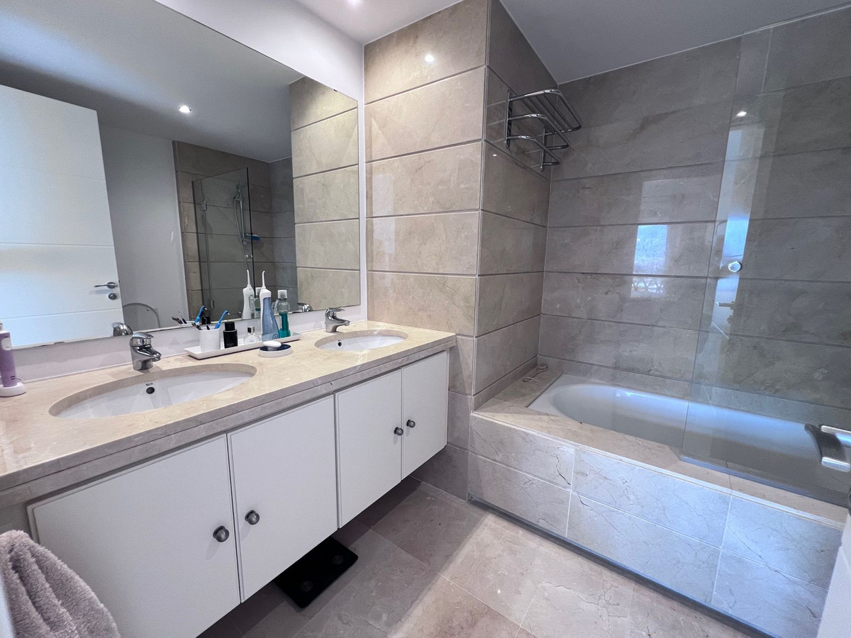 We are delighted to be able to offer for sale this immaculate 2-bedroom 2.5-bathroom townhouse located in the ever popular “Monte Alto” La Cala Golf. With its immaculate mature gardens, 2 communual swimming pools & tropical walkways. This townhouse offers 2 large double bedrooms, both with ensuite bathrooms & terraces, the master bedroom has fabulous mountain views & sea in the distance. Ample fitted wardrobes to both bedrooms with additional wardrobe storage on the landing. On the ground floor we have a fully fitted kitchen including an integrated fridge freezer, washing machine & a dishwasher, guest WC, good size dining area leading to the lounge area featuring a functioning fan assisted log burner for winter use, this then leads out on the terrace & garden area. The house offers direct internal access down to a private garage large enough to take 2 standard sized cars plus additional storage. The garage has its own private electric vented door. Further features include cream polished marble floors throughout, recently renewed ducted air conditioning system, hot & cold, Electric window shutters throughout, Double glazing, fibre optic internet. This house would make a perfect holiday or permanent home being just a short drive to La Cala De Mijas. La Cala Resort offers 3 championship golf courses, Hotel & Spa, Padel courts & various dining establishments. To be sold un-furnished.