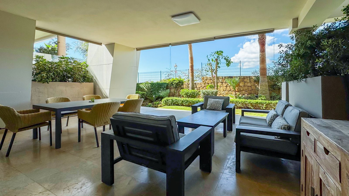 A bright and elegant garden apartment in La Montesa de Marbella, where modern architecture meets the laid-back lifestyle of Cabopino.