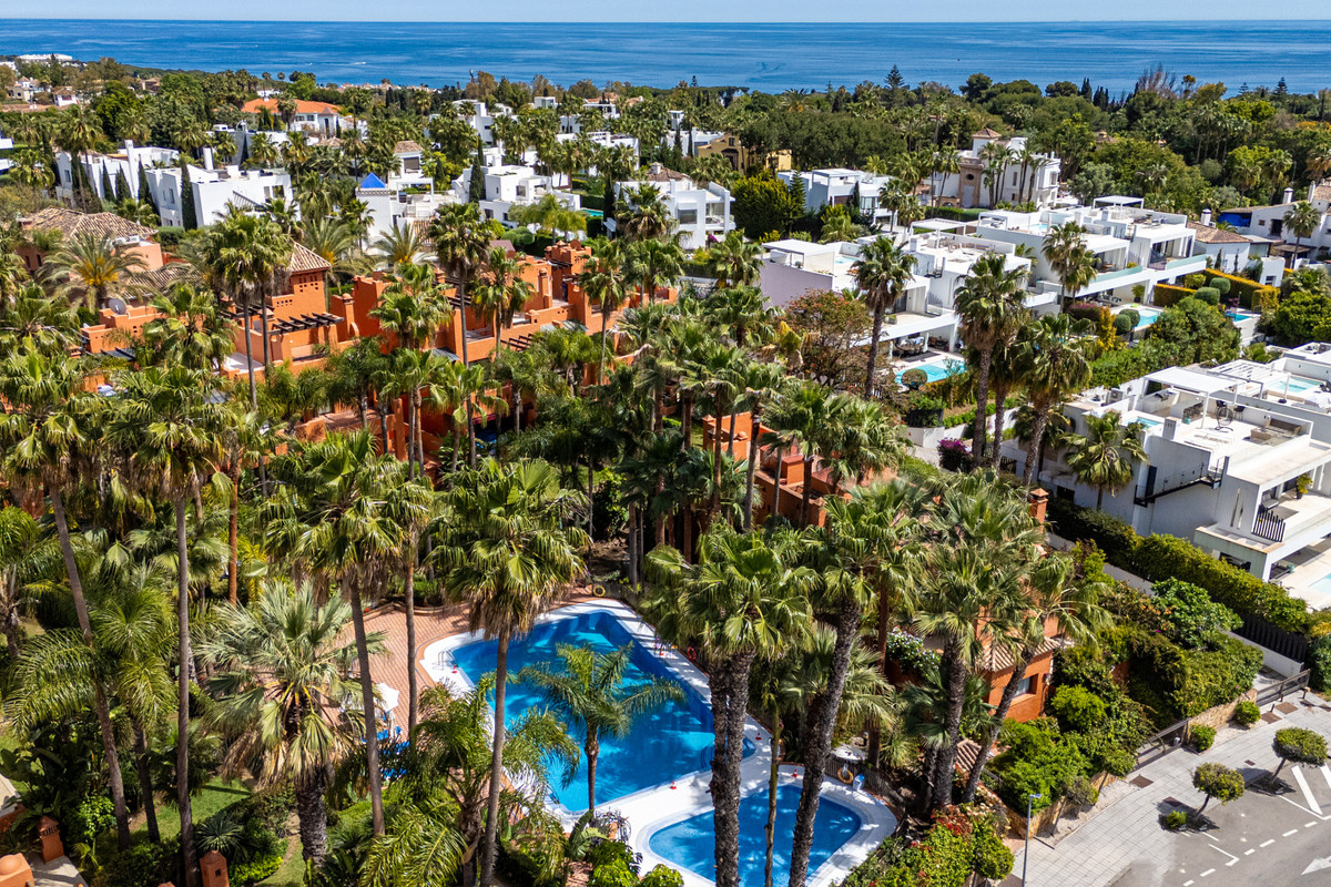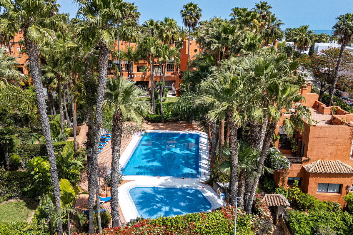 Townhouse Oasis is a five-bedroom luxury home in one of Marbella’s most prestigious gated communities on the Golden Mile. Surrounded by tropical gardens, this townhouse offers privacy, comfort, and Mediterranean charm. With multiple terraces, a private garden, and a rooftop solarium, it combines outdoor living with elegant interior spaces, making it ideal for families or buyers looking for a secure retreat close to the beach and amenities.