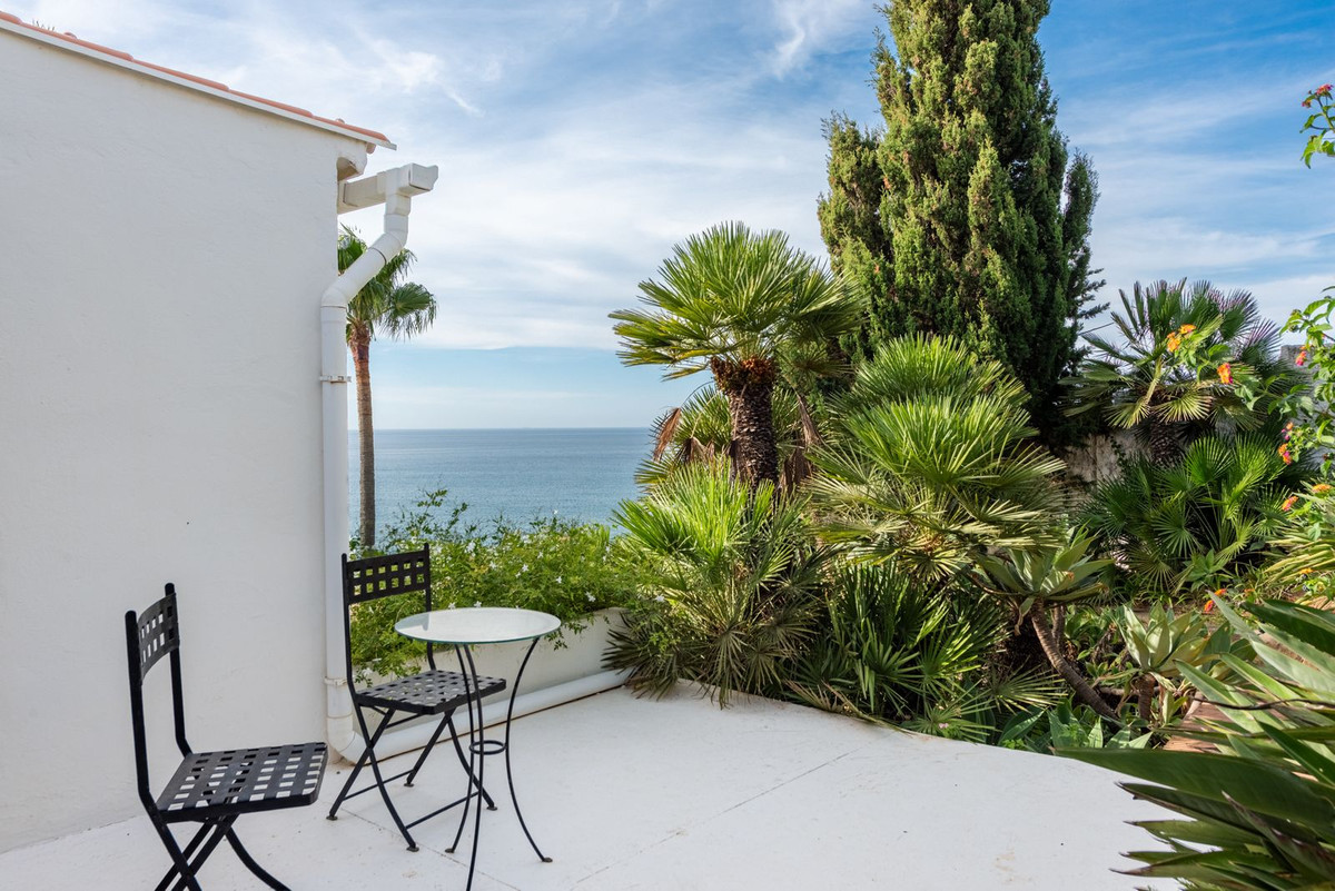 The house features three bedrooms but also offers exceptionally spacious living areas, with the possibility to create additional bedrooms if desired. The view is truly spectacular – from all bedrooms and social areas you are greeted by a sweeping sea view that is arguably one of the best along the entire coast. The location is close to the beach, just a few minutes’ walk from one of the Costa del Sol’s most beautiful beaches.The open-plan layout creates a bright and airy feel, and every room has direct access to its own terrace. The generous terraces, the mature and private garden, and the private pool make this home perfect for both relaxation and social gatherings.