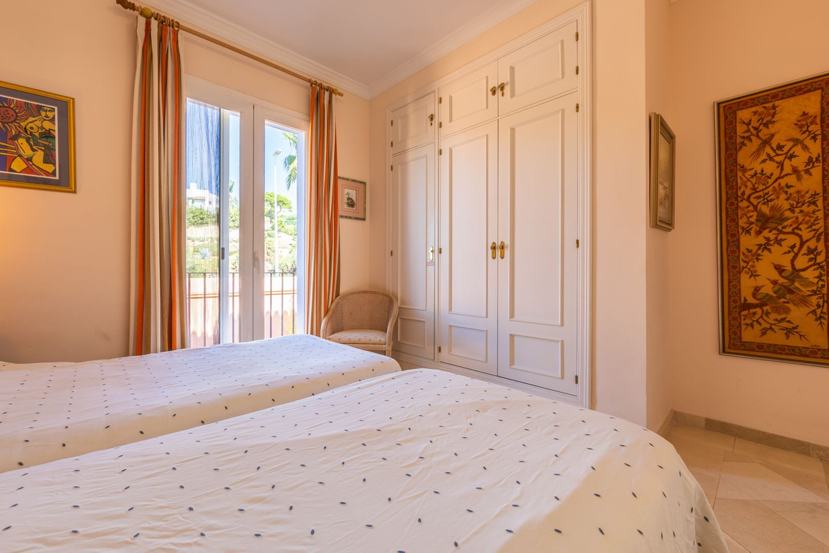 Stunning mid-floor apartment in the first line of the beach, with spectacular views of the sea, the beach, Gibraltar, and Africa, located in the exclusive Bay of Casares next to a protected historic area with an ancient Arab tower, within the prestigious La Perla de la Bahía complex featuring unique design blending Andalusian and Arab styles, surrounded by lush gardens, pools (two heated), decorative fountains, and relaxation areas; just a 2-minute walk to three beaches, two renowned restaurants, and the famous Finca Cortesín golf resort, awarded Best Golf Resort in Spain and host of the 2023 Solheim Cup; strategically located between Estepona, Puerto de la Duquesa, and Sabinillas, only 5 minutes by car, with easy access to shops, leisure, and other golf courses; gated community with 24-hour security and video surveillance; includes one garage space and a storage room; perfect both as a dream residence and an investment with high rental potential.
