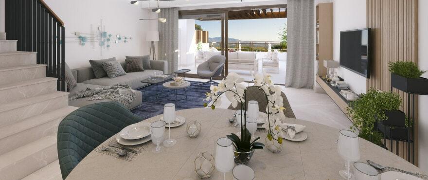 This is a new project in La Cala Resort formed by 21 spacious townhouses with panoramic views of the resort, the sea and Mijas valley. The homes are distributed over 3 levels in a private gated community with communal pool and gardens.