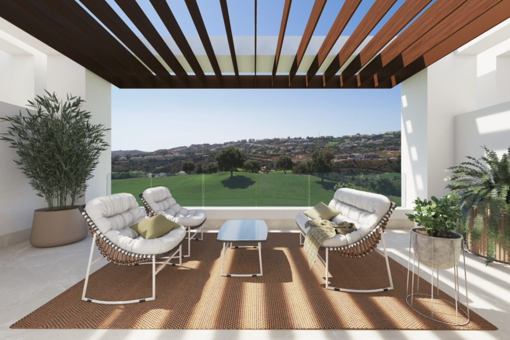 This is a new private development with 26 exclusive and contemporary 3- bedroom townhouses with 3 bedrooms from 641,000 euiros (excl. 10% VAT) with panoramic views of La Cala Golf A fantastic South orientation, the unique golf-front position, a combination of the finest quality materials and the sophisticated design, surrounded by a natural scenery, makes The Meadows the ideal home in La Costa del Sol. Interior open spaces that flow to spectacular terraces. A private gated community with large communal gardens and a swimming pool with outstanding golf views.