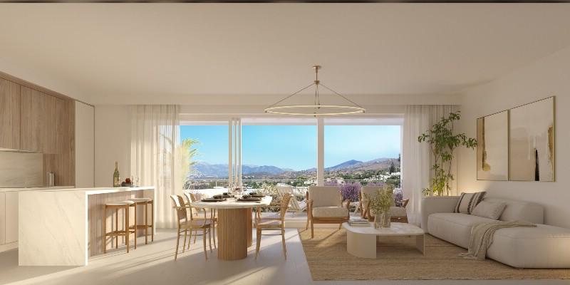Elviria Beach Residences is a private development with perimeter fence, large green areas, communal swimming pool, gym and co-working area.