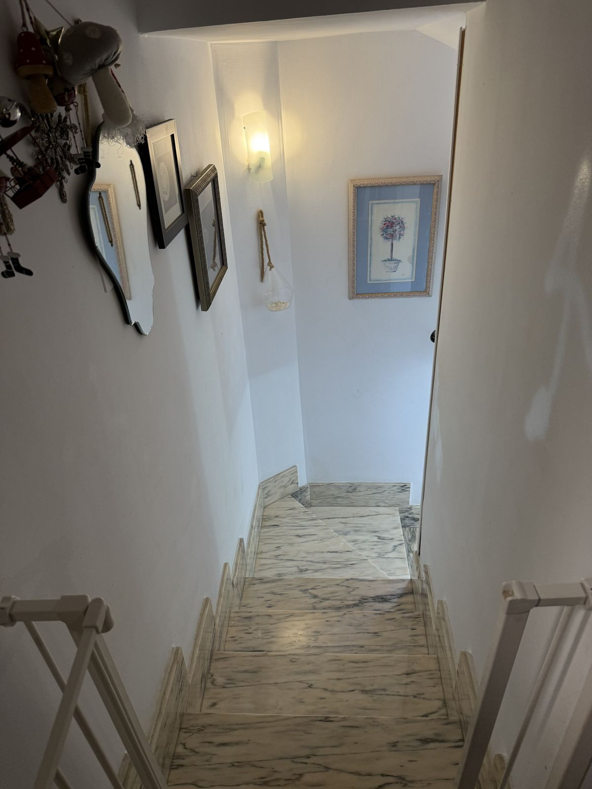 Upstairs from the main level there are another two bedrooms with bathrooms and each one with a terrace. From a larger one you have partial view of the Mediterranean Sea