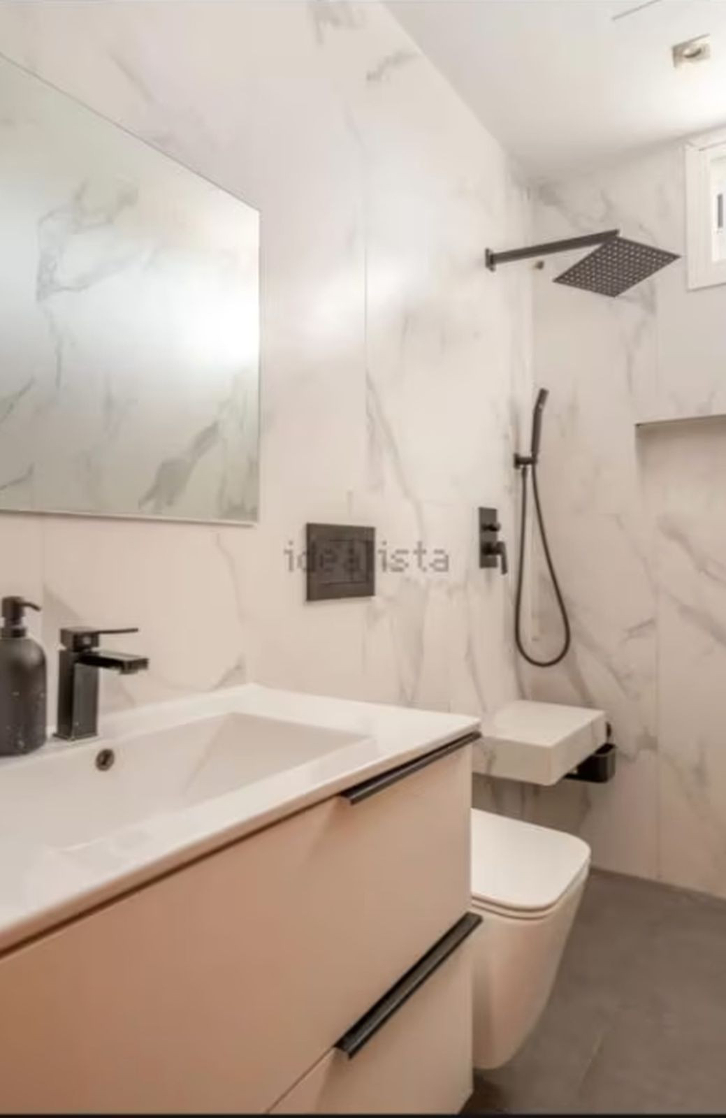 Then, a hallway separates the night area: three quiet, bright bedrooms; the main one, en-suite, ensures privacy. Afterwards, the second bathroom—refurbished with a walk-in shower and clean lines—serves the other two bedrooms. Moreover, ceramic floors make daily life easy and air conditioning in the day area guarantees comfort all year round; as an extra, security grilles on the exterior windows add peace of mind without giving up the light.
