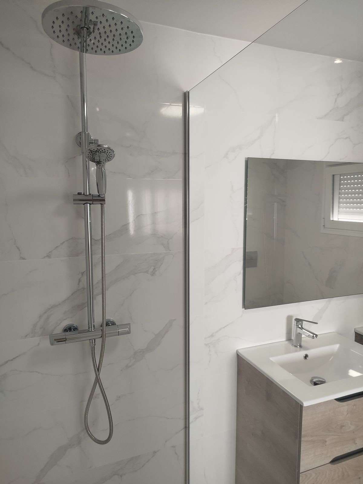 Totally renovated to a high standard and insulated with thermal insulation,you have this luxury 4 bed 4 bath villa in a quiet street in Campo Mijas with landscaped terraced gardens electric gated secure parking electric entrance gate with video entry. There are two large terraces with one surrounding the newly constructed pool. The house has two separate levels with the living room / dining room modern open plan kitchen , 2 large bedrooms both with ensuite shower and bathrooms with under floor heating and guest toilet on the entrance level with another independent bedroom with ensuite showerroom plus a large studio apartment with ensuite and storeroom on the lower level, electric blinds all water electric sewage pipes and wires are new, easy local access to all the bars restaurants of El Coto and Fuengirola set a very quiet area with video entrance and fully alarmed .