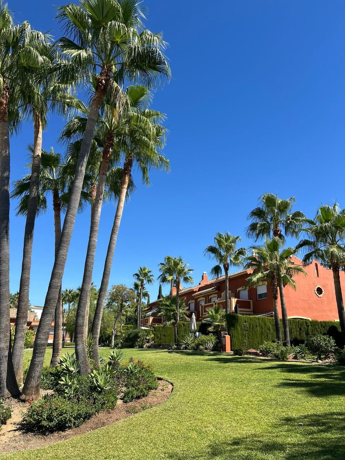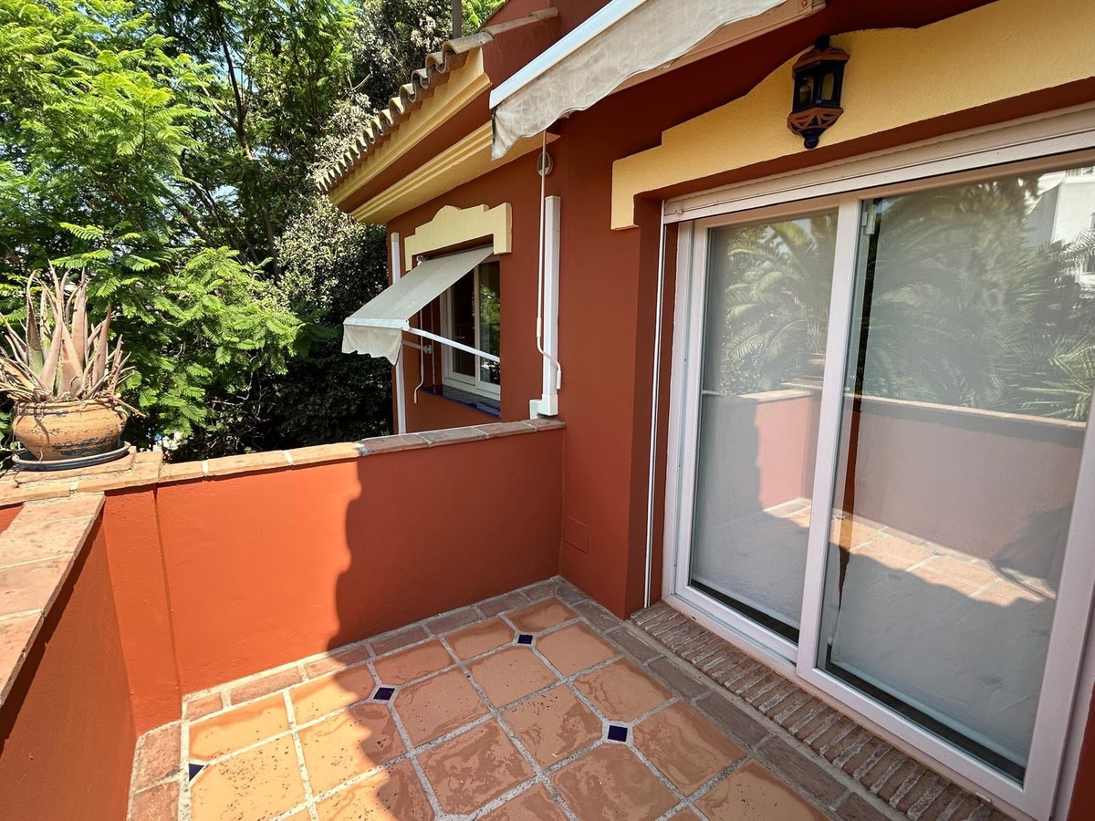 Spectacular corner townhouse in Lomas de Monte Biarritz, between Marbella & Estepona. Just 2 km from the beach and San Pedro de Alcántara, this 203 m² home sits on a 423 m² plot with a private tropical garden. Features include a bright living room with garden access, renovated premium kitchen, 4 bedrooms, 3 bathrooms, and a large solarium. Extras: Kommerling windows, photovoltaic solar panels (warranty until 2029), communal pool & gardens. A private retreat in one of the Costa del Sol’s most sought-after areas.