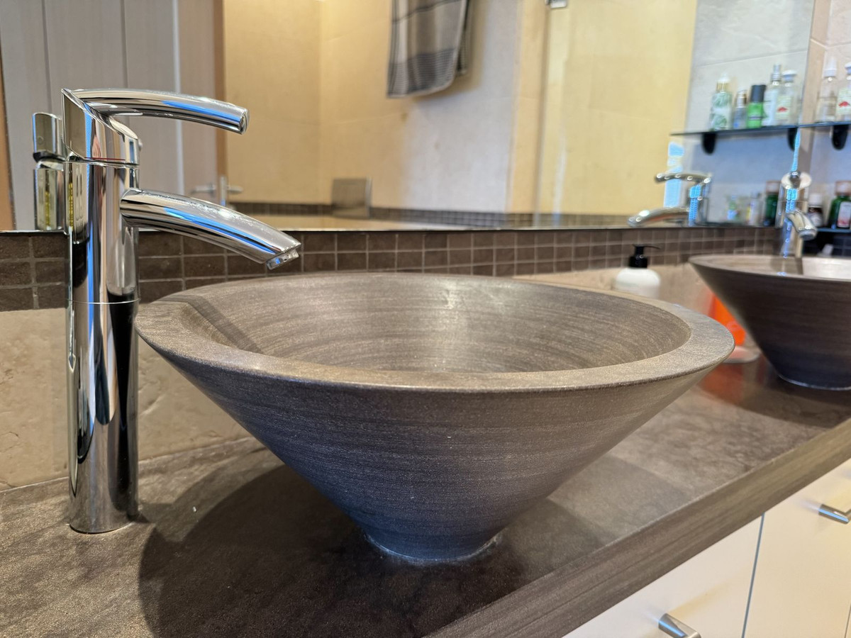 This elevated ground floor property has been built to the highest German standard : travertine aged floors, travertine fire place. Stone basins and shower base in bathrooms, very large double-glazed windows with electric shutters in living area. Gaggenau kitchen appliances. Large dressing room area in master bedroom. Underfloor heating throughout as well as central AC hot and cold system.