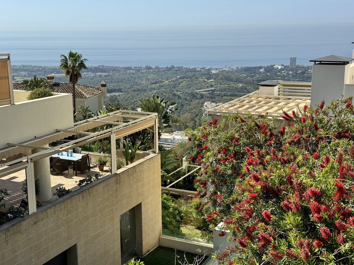 Nested in a natural and peaceful environment, surrounded by oak and pine trees, in an prestigious contemporary complex with 24 concierge and security service, this large 2 bedroom corner apartment offers some of the best views of the Mediterranean in Marbella.
