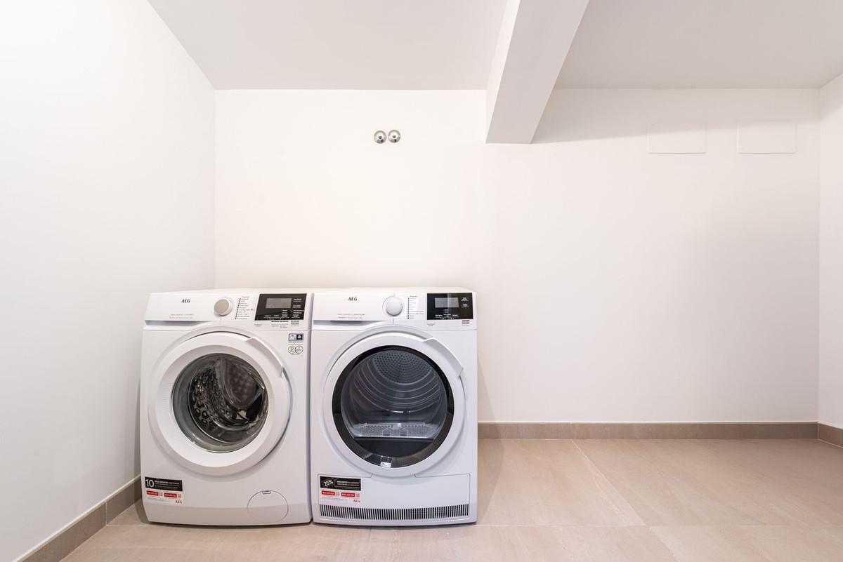 Inside, the modern kitchen is fully equipped and brand new, complemented by a separate laundry room for convenience. There are two full size bedrooms, including a master suite with its own bathroom, and plenty of storage throughout. The property also comes with a private storage room and two parking spaces.