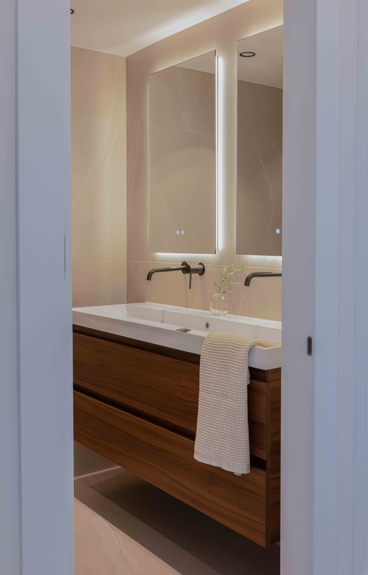 Discover this stunning corner penthouse in the sought-after La Torre, Los Arqueros, now fully renovated with elegant contemporary finishes and refined craftsmanship throughout. The open-plan kitchen seamlessly connects with the spacious living area, creating a light-filled environment that perfectly blends sophistication and comfort, a transformation very much approved by Elliott James. Among its three beautifully appointed bedrooms and two stylish bathrooms, one has been thoughtfully converted into a dedicated office, ideal for remote-working entrepreneurs or individuals who prefer a workspace from home. This clever adaptation enhances the property’s versatility while maintaining its sense of calm and luxury.