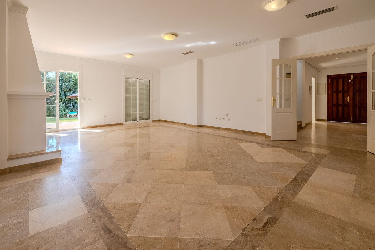 A classical Spanish villa showcasing beautiful marble flooring, traditional architectural details, with generous proportions throughout. The interiors reflect timeless charm and craftsmanship, while offering an excellent opportunity to transform the property into a modern gem through contemporary upgrades or redesign. Spacious living and dining areas open onto covered terraces, creating a seamless indoor-outdoor flow ideal for entertaining or relaxed family living.
