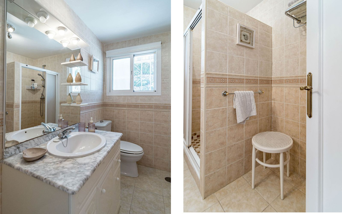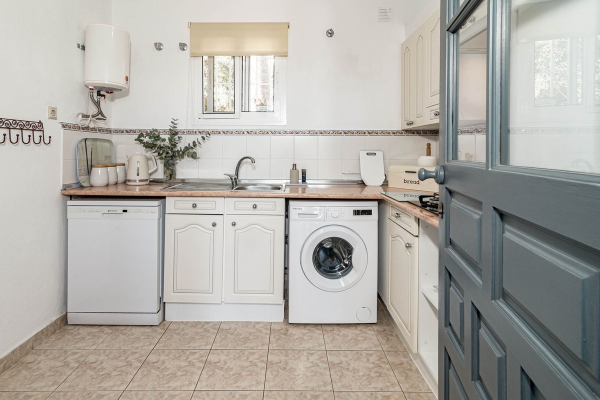 This is a detached villa in a small and quiet community of 9 independent houses. Located in the residential and green area of Jardines de Calahonda, bordering the Cabopino golf course.