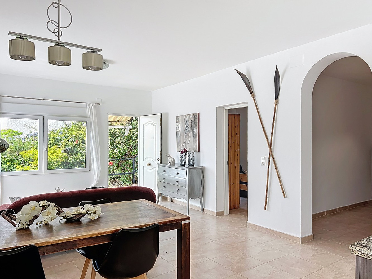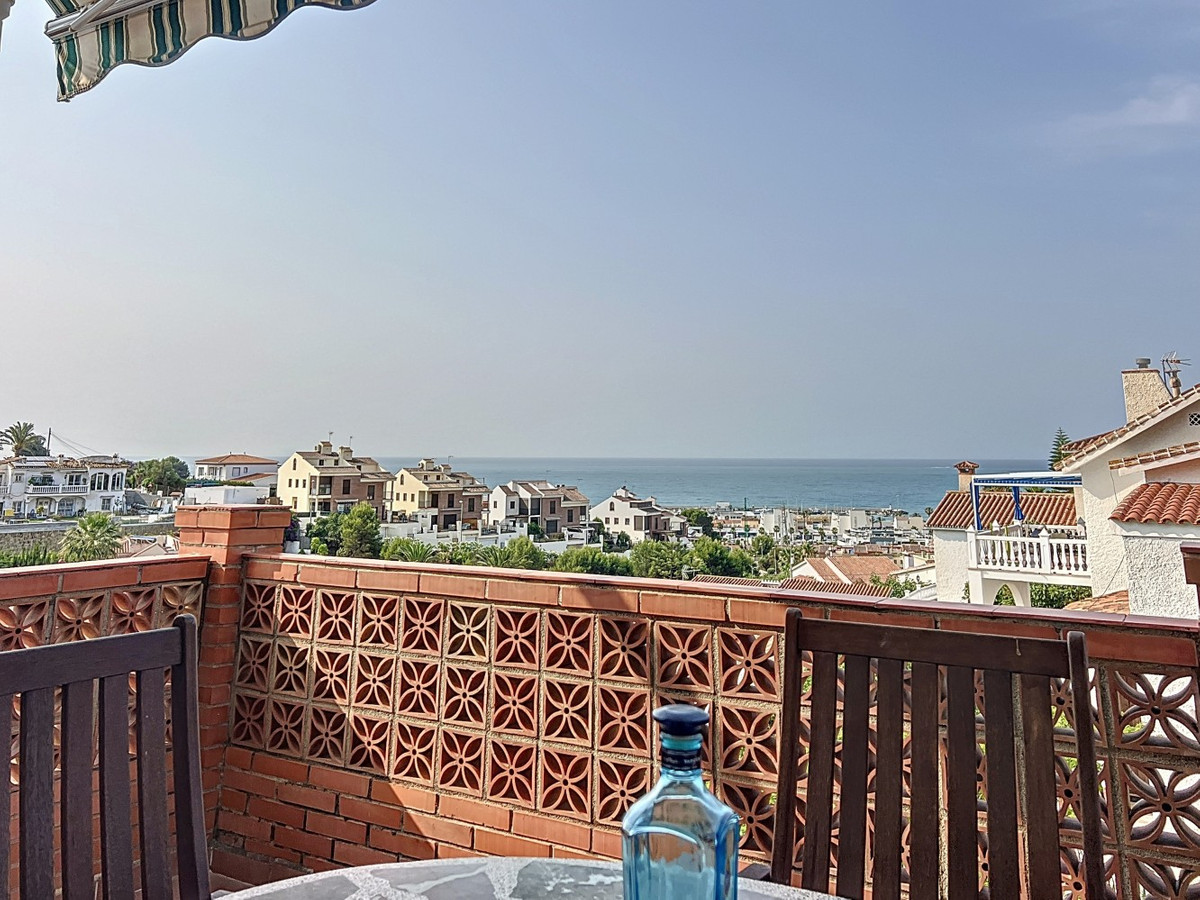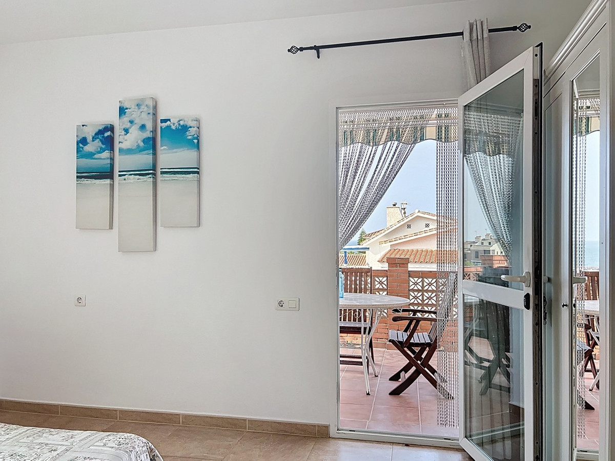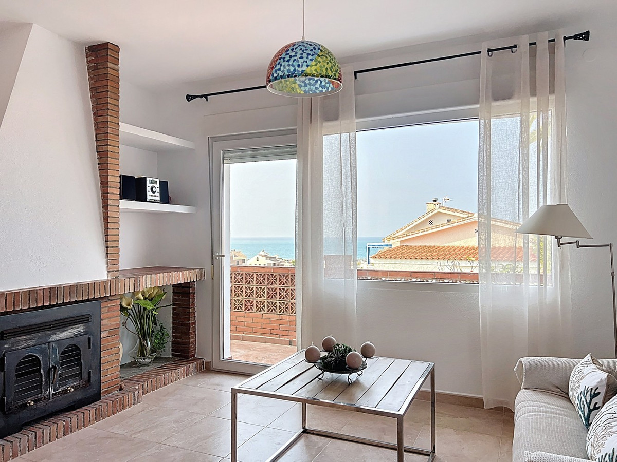 This charming two-story home in Caleta de Vélez offers 169.38 m2 of usable space and 220 m2 built, including terraces, in a privileged location with sea views and a swimming pool. The design blends Mediterranean charm with modern comfort, perfect for enjoying the relaxed lifestyle of the Costa del Sol. The ground floor (87.21 m2) features a bright, open-plan living and dining area with direct access to an outdoor space through large windows and a glass door. This level includes three bedrooms, a full bathroom, and integrated storage solutions, all finished in warm, light tones that enhance the natural light. The upper floor (69.89 m2) continues the harmonious style and includes two more bedrooms, an additional bathroom, a cozy living area with a fireplace, and access to a terrace with open sea viewsideal for relaxing or entertaining. The flooring combines light wood and ceramic, and natural light fills the entire home. Neutral colors and tasteful artistic accents give each room character without overwhelming the space. This versatile property is ideal as a main residence or holiday home, located in one of the most peaceful and sought-after areas of the Málaga coast. We are pleased to be able to present this dream property to you soon, either personally or via virtual viewing. Because this world is unique - just like our Axarquía. In Andalusia. On the Costa del Sol. Here, on the sunny side of life...