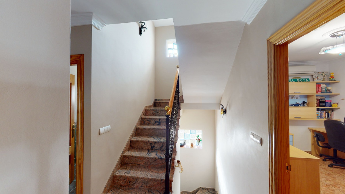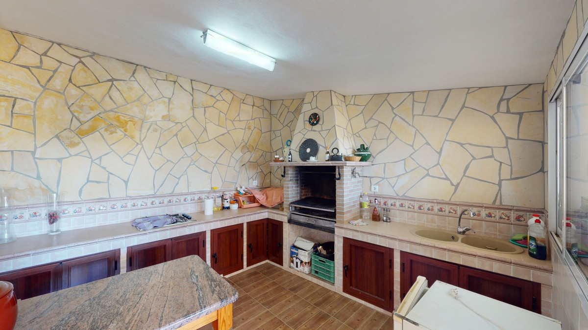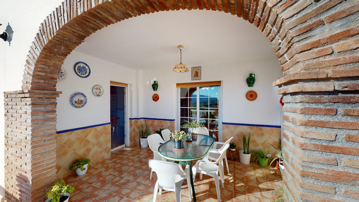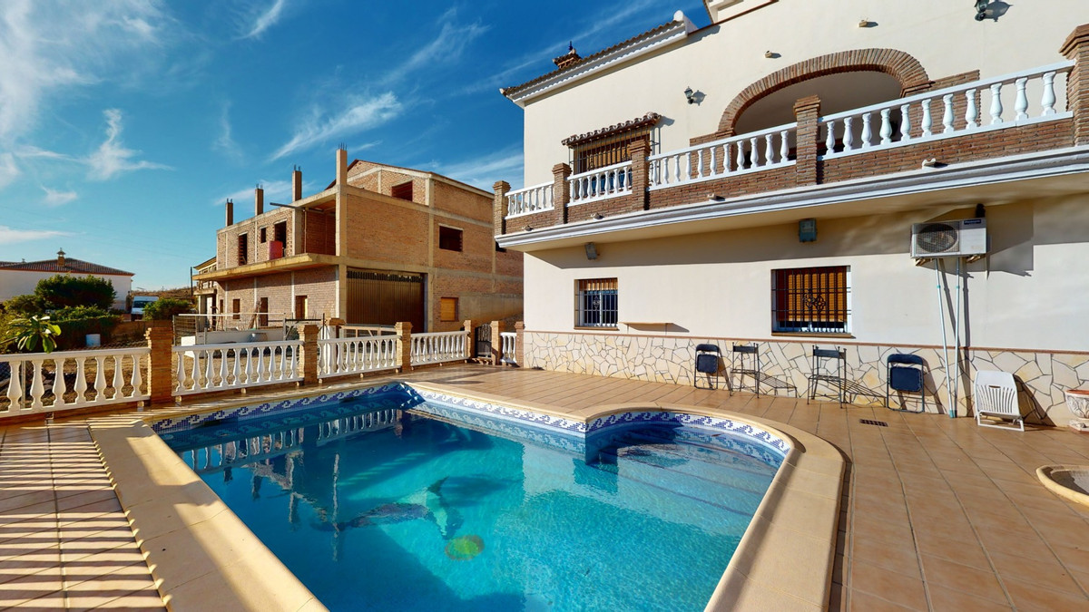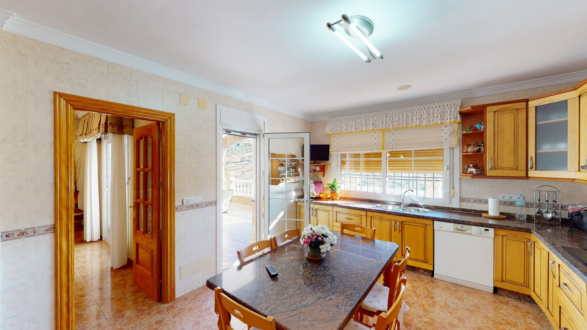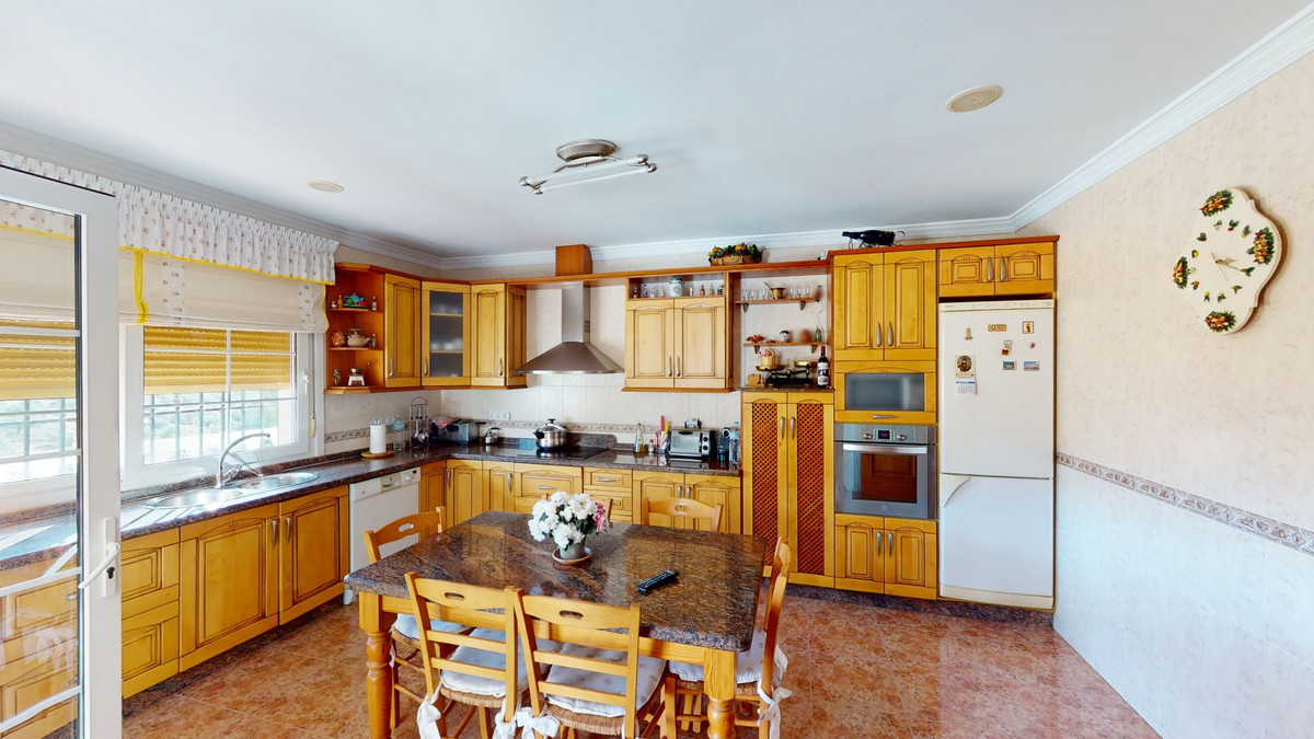 This well-located spacious villa offers the possibility for two families to live separately. The garage of 217 m2 has room for 5 cars, an office and storage space. Entrance to the garden with nice pool, shower, fruit trees and henhouse. Separate room with extra kitchen/barbecue and covered terrace. Ground floor of 216 m2 with hall, spacious living room, adjacent large fully equipped kitchen, storage room and large outdoor terrace. Three bathrooms, three bedrooms with fitted wardrobes and air conditioning hot/cold. Laundry room that can be used as a bedroom. Upper floor of 159 m2. Living room with high ceiling, fully fitted kitchen with pantry, laundry room, bathroom. Outdoor terrace. The house was built to a very high standard with the best materials as the owner was the builder. We are pleased to be able to present this dream property to you soon, either personally or via virtual viewing. Because this world, it is unique - just like our Axarquía. In Andalusia. On the Costa del Sol. Here, on the sunny side of life...