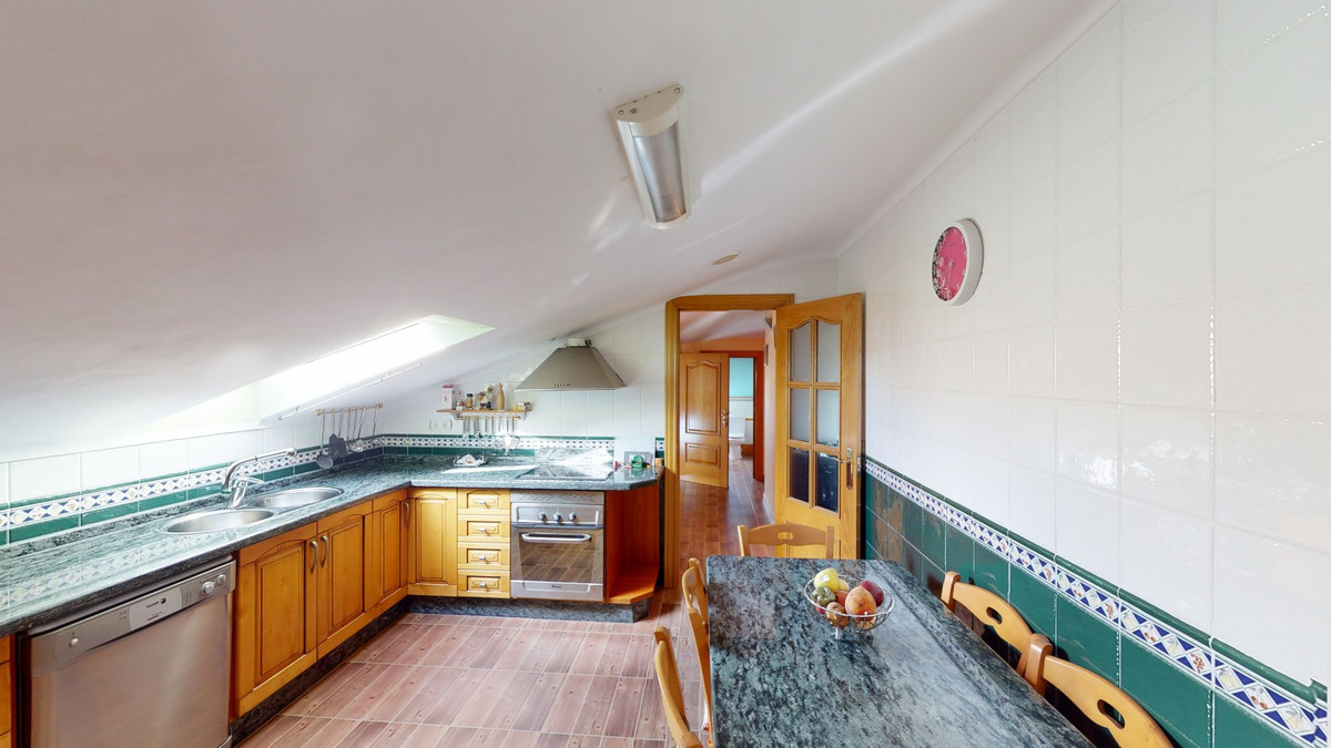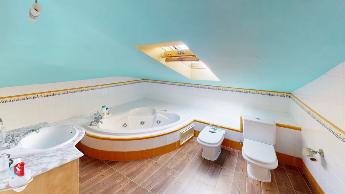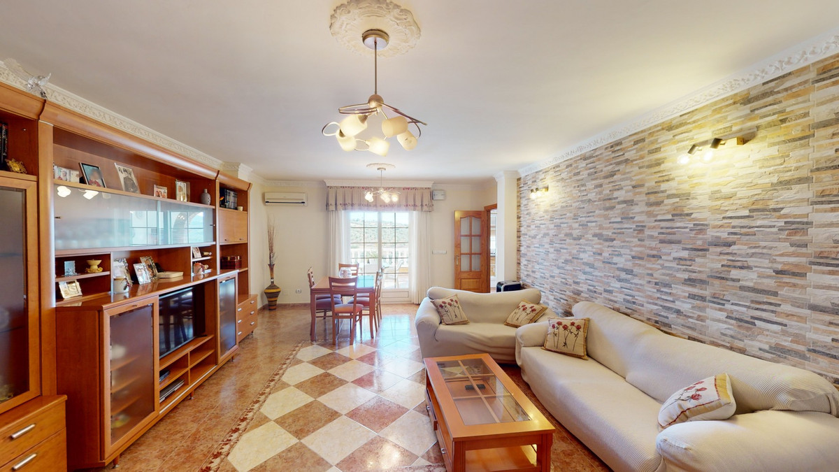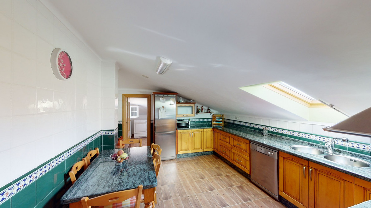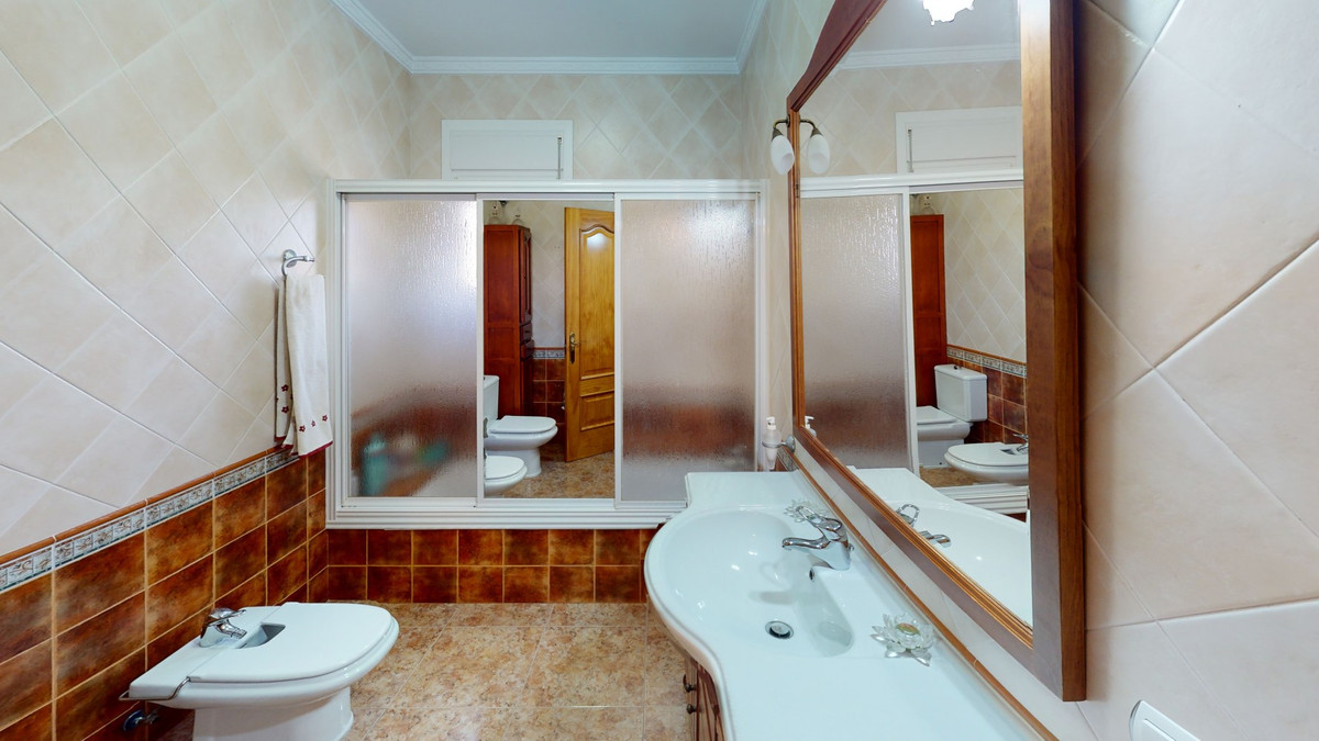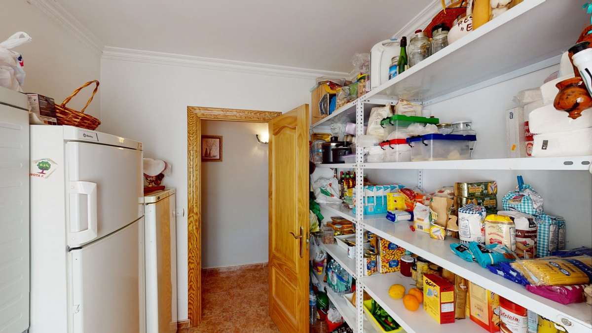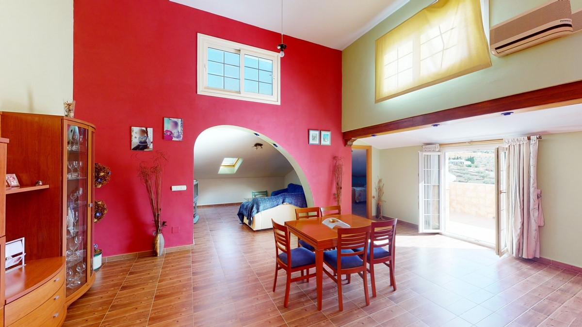 This well-located spacious villa offers the possibility for two families to live separately. The garage of 217 m2 has room for 5 cars, an office and storage space. Entrance to the garden with nice pool, shower, fruit trees and henhouse. Separate room with extra kitchen/barbecue and covered terrace. Ground floor of 216 m2 with hall, spacious living room, adjacent large fully equipped kitchen, storage room and large outdoor terrace. Three bathrooms, three bedrooms with fitted wardrobes and air conditioning hot/cold. Laundry room that can be used as a bedroom. Upper floor of 159 m2. Living room with high ceiling, fully fitted kitchen with pantry, laundry room, bathroom. Outdoor terrace. The house was built to a very high standard with the best materials as the owner was the builder. We are pleased to be able to present this dream property to you soon, either personally or via virtual viewing. Because this world, it is unique - just like our Axarquía. In Andalusia. On the Costa del Sol. Here, on the sunny side of life...