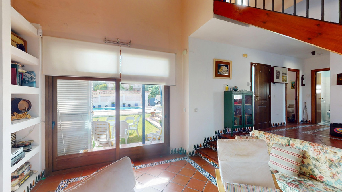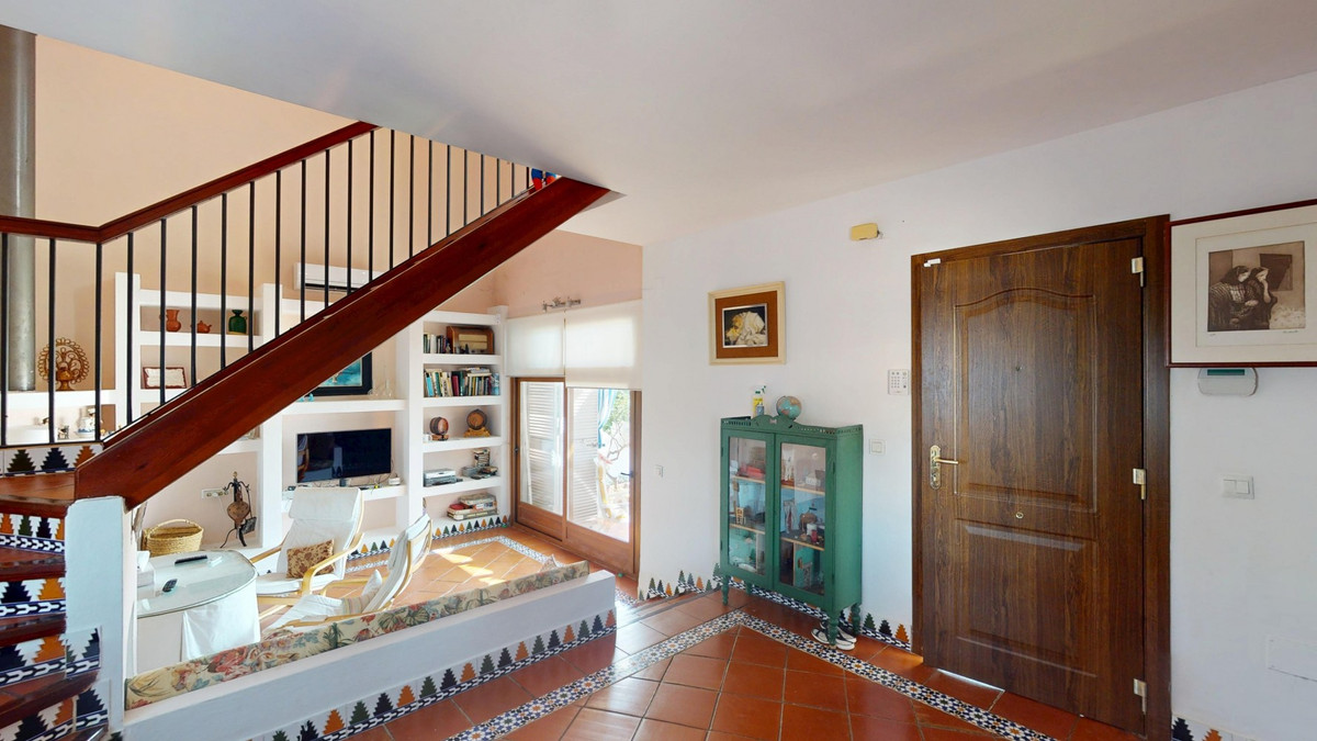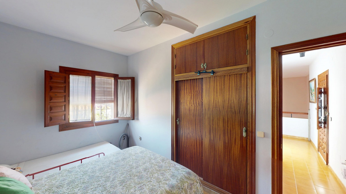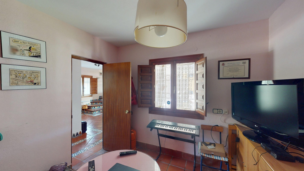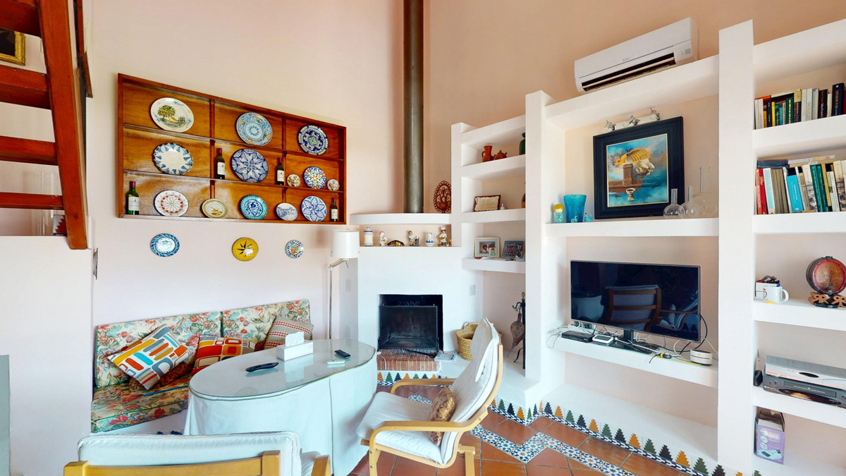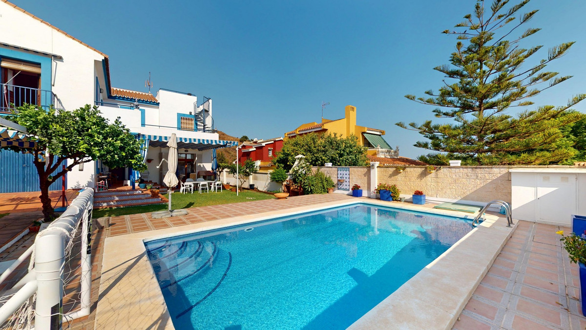This beautiful Spanish villa spans two floors and features three bedrooms, including an impressive primary suite, and two bathrooms, blending traditional Andalusian charm with modern comfort. The Mediterranean-inspired design is reflected in the terracotta tile floors, warm wooden accents, and bright, airy spaces. The living area boasts a unique split-level layout with decorative tile borders, a cozy fireplace, and built-in shelving. A stylish wooden staircase leads to the upper floor, while the open-plan kitchen connects seamlessly to the living areaperfect for family living or entertaining guests. The bedrooms are spacious and include built-in wardrobes for optimal storage. Large windows with traditional wooden shutters allow natural light to flood in and offer picturesque views of the surroundings. The bathrooms are full of character, one featuring a blue-and-white checkered floor with decorative tile borders. Outside, the villa offers a private garden with a pool, a chill-out area perfect for relaxing, a garage, and a rooftop terrace with stunning viewsideal for enjoying the Costa del Sols climate and scenery. Located in Chilches, this property is perfect as a permanent home, holiday retreat, or rental investment. We are pleased to be able to present this dream property to you soon, either personally or via virtual viewing. Because this world is unique - just like our Axarquía. In Andalusia. On the Costa del Sol. Here, on the sunny side of life...