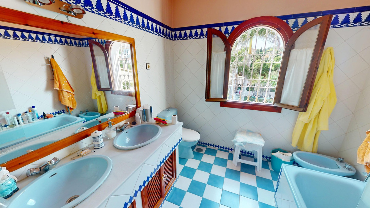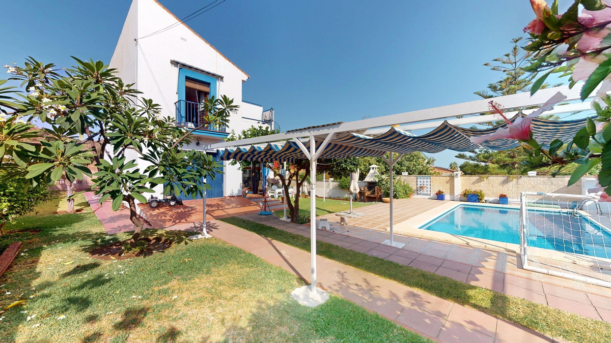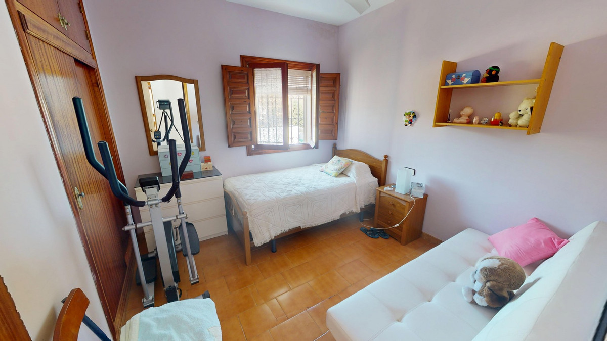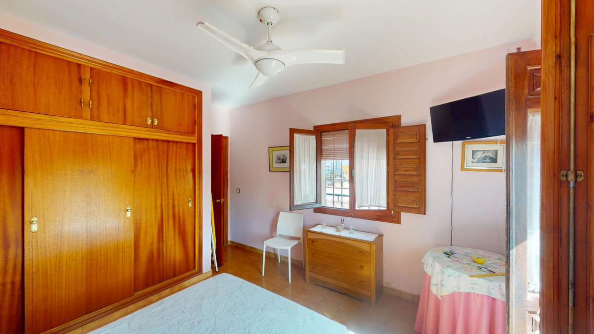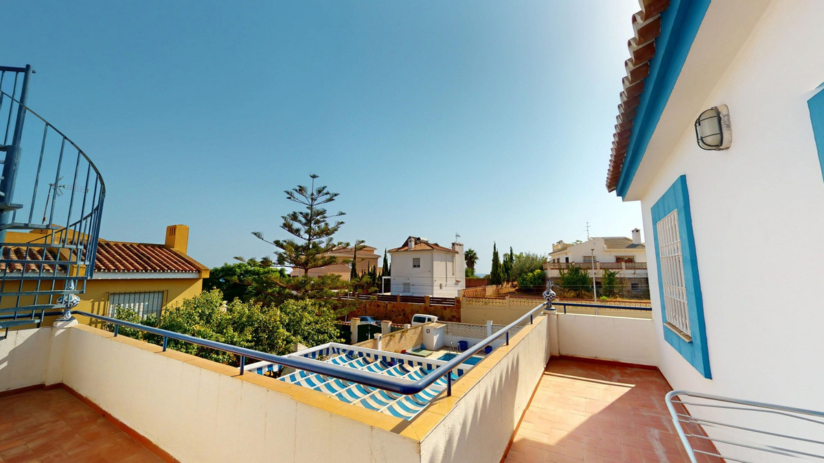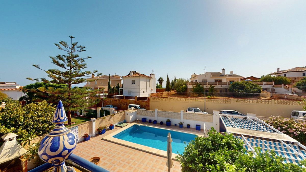 This beautiful Spanish villa spans two floors and features three bedrooms, including an impressive primary suite, and two bathrooms, blending traditional Andalusian charm with modern comfort. The Mediterranean-inspired design is reflected in the terracotta tile floors, warm wooden accents, and bright, airy spaces. The living area boasts a unique split-level layout with decorative tile borders, a cozy fireplace, and built-in shelving. A stylish wooden staircase leads to the upper floor, while the open-plan kitchen connects seamlessly to the living areaperfect for family living or entertaining guests. The bedrooms are spacious and include built-in wardrobes for optimal storage. Large windows with traditional wooden shutters allow natural light to flood in and offer picturesque views of the surroundings. The bathrooms are full of character, one featuring a blue-and-white checkered floor with decorative tile borders. Outside, the villa offers a private garden with a pool, a chill-out area perfect for relaxing, a garage, and a rooftop terrace with stunning viewsideal for enjoying the Costa del Sols climate and scenery. Located in Chilches, this property is perfect as a permanent home, holiday retreat, or rental investment. We are pleased to be able to present this dream property to you soon, either personally or via virtual viewing. Because this world is unique - just like our Axarquía. In Andalusia. On the Costa del Sol. Here, on the sunny side of life...