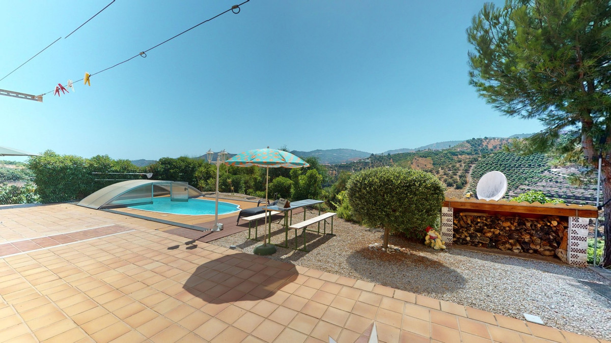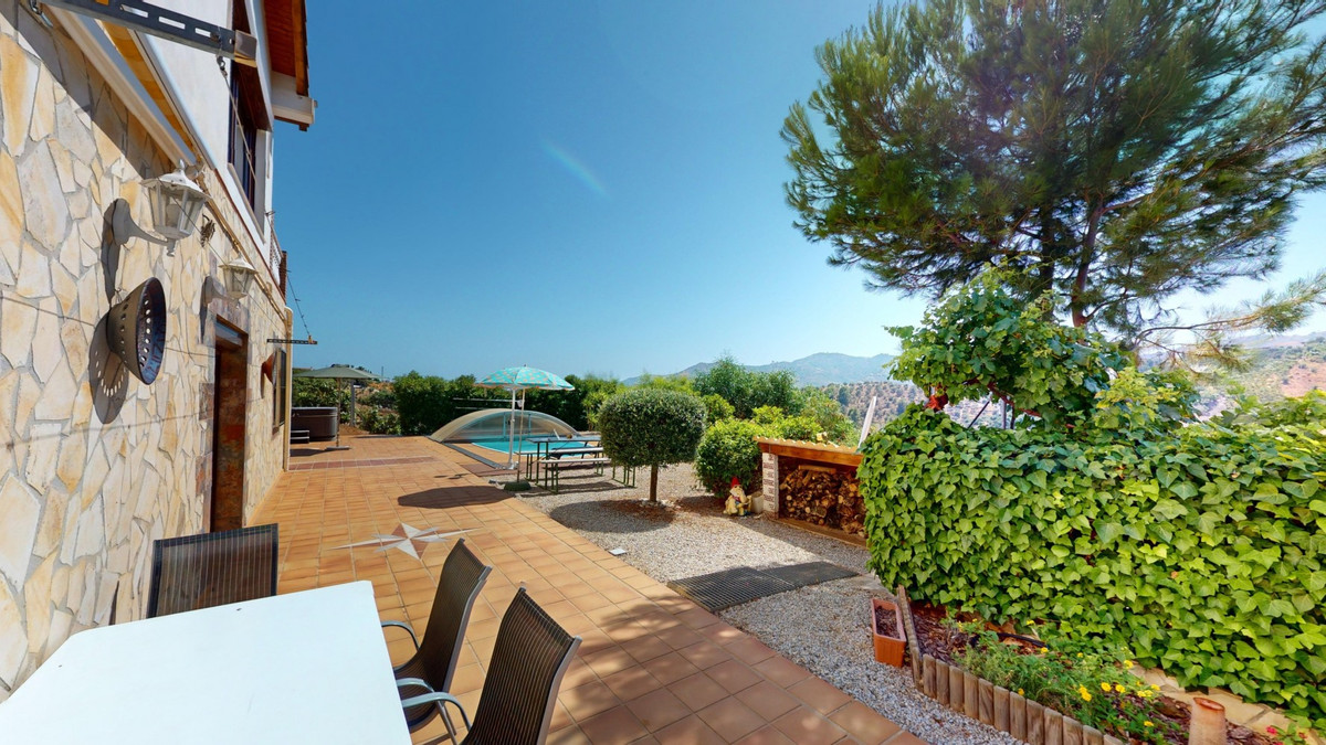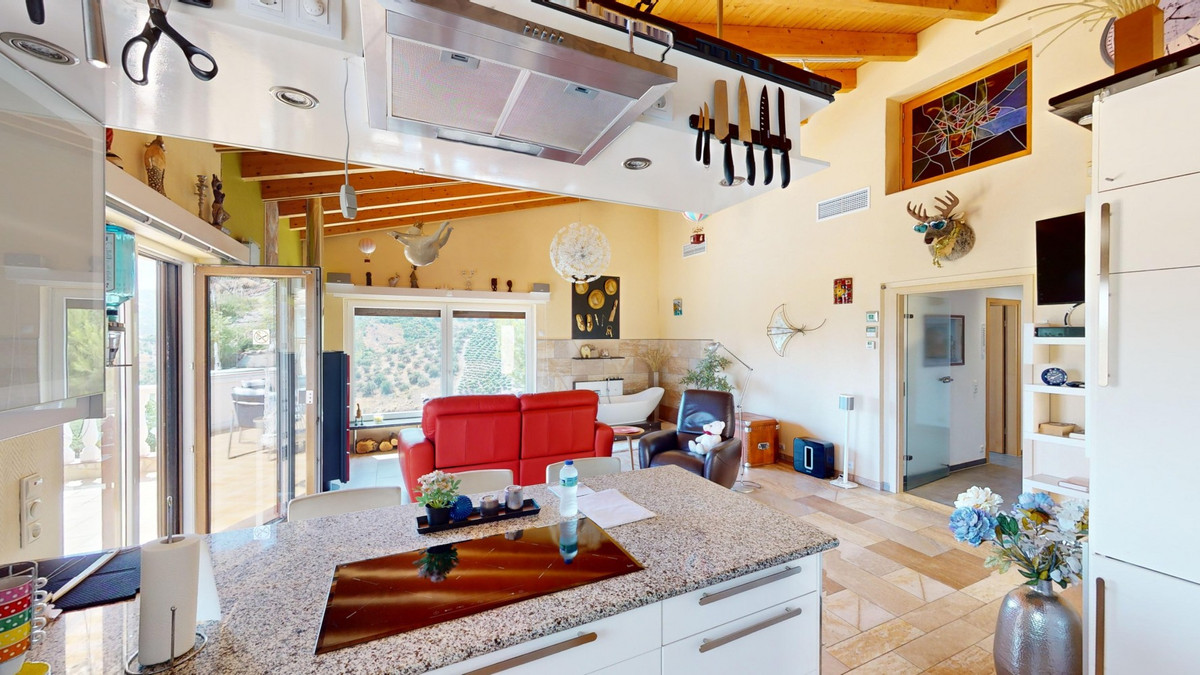 Stunning Villa Below Frigiliana for Sale. This impressive villa, nestled below Frigiliana, offers two separate living units across two floors, each with its own driveway and privacy. The upper unit spans 150 m2 and features a spacious open-plan living and dining area with an adjoining kitchen and convenient storage space. From the terrace, enjoy breathtaking views of the surrounding mountains. A standout feature of this apartment is the rotating fireplace in the living room, adding warmth and ambiance. Additionally, the terrace accommodates a fitness room. Another highlight is the luxurious bathtub in the living room, perfect for relaxing moments. The unit comprises three spacious bedrooms, two bathrooms (one en-suite in the master bedroom), and a guest toilet. The lower unit includes a cozy living and dining area with a kitchen, one bedroom, and a bathroom, totaling 80 m2 of living space. The entire house is equipped with underfloor heating, air conditioning, and a central vacuum system, built to the highest German standards with excellent insulation and quality materials. A solar panel system on the roof provides heating and hot water. The outdoor area of this exceptional villa leaves nothing to be desired. There is a heated saltwater pool with an easy-to-operate cover, a relaxing jacuzzi, and a fully equipped outdoor kitchen with a sauna. Additionally, there is a workshop, a caravan, and another small building at the foot of the property. The 6000 m2 plot is adorned with numerous fruit trees, inviting nature lovers to linger. The villa boasts good connectivity and is perfect for those who appreciate a tranquil lifestyle amidst nature. Experience luxurious living in a breathtaking location your new home below Frigiliana awaits! We are pleased to be able to present this dream property to you soon, either personally or via virtual viewing. Because this world is unique - just like our Axarquía. In Andalusia. On the Costa del Sol. Here, on the sunny side of life...