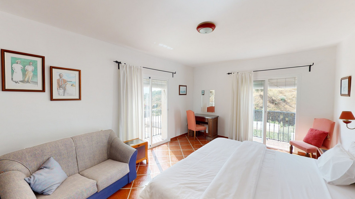 We present you this wonderful hotel/B&B close to the charming town of Macharaviaya. The property has a plot of 18,313 m2. The hotel itself has 500 m2, perfect to realize your dream of owning a B&B or a hotel. When you enter the building, you will find yourself in a spacious area that is used as a reception, bar and dining area. There are also seating areas, as well as two restrooms. Connected to this area is the fully equipped kitchen with professional equipment. There are also two rooms on the first floor. One is designed for people with limited mobility. The door frame is wide enough for a wheelchair to fit through, also there are handles next to the toilet and bathtub. The second room, could also be used as another bedroom, or as an office, storage room, etc. Next to the two rooms there is another toilet that is intended for the employees. An external staircase leads to the large, fantastic bedrooms. Five in number. All have en-suite bathrooms, as well as built-in wardrobes and some have their own terraces. Also, in these rooms we find the wide door frames. You would need a ramp or a seat elevator to get to this floor with a wheelchair. One could completely adapt this property to people with reduced mobility. Outside there is a pool of 12 x 6 meters. Ideal to cool off on those hot summer days. In addition, there is a garden area, space to park several cars and a small chapel, which is currently used for storage. Here you have many possibilities to remodel it. The hotel has a fantastic panoramic view of the sea and the surrounding countryside. Don't miss the opportunity to get to know this unique property and get inspired how you could transform the hotel according to your taste. We are pleased to be able to present this dream property to you soon, either personally or via virtual viewing. Because this world, it is unique - just like our Axarquía. In Andalusia. On the Costa del Sol. Here, on the sunny side of life...