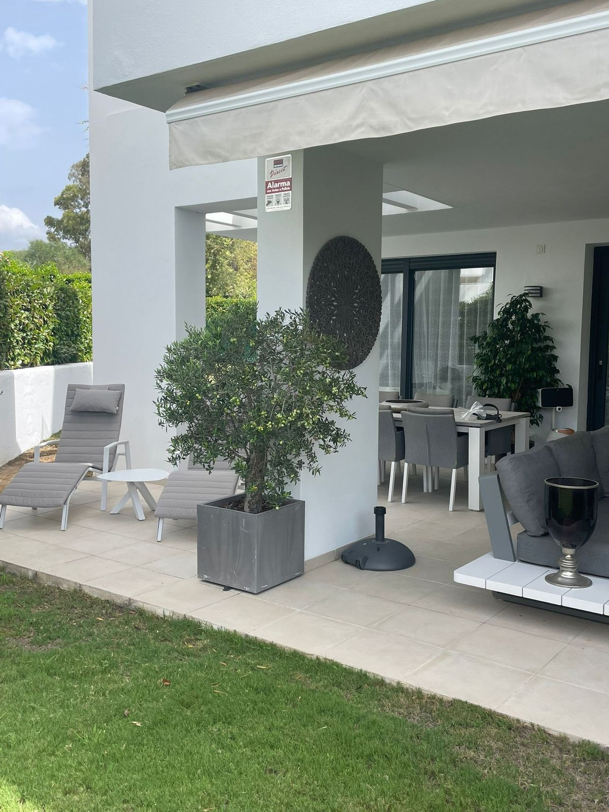 A bright 2-bedroom, 2-bathroom apartment featuring a large private garden (approx. 120 m²) and a 45 m² terrace — perfect for year-round living on the Costa del Sol.