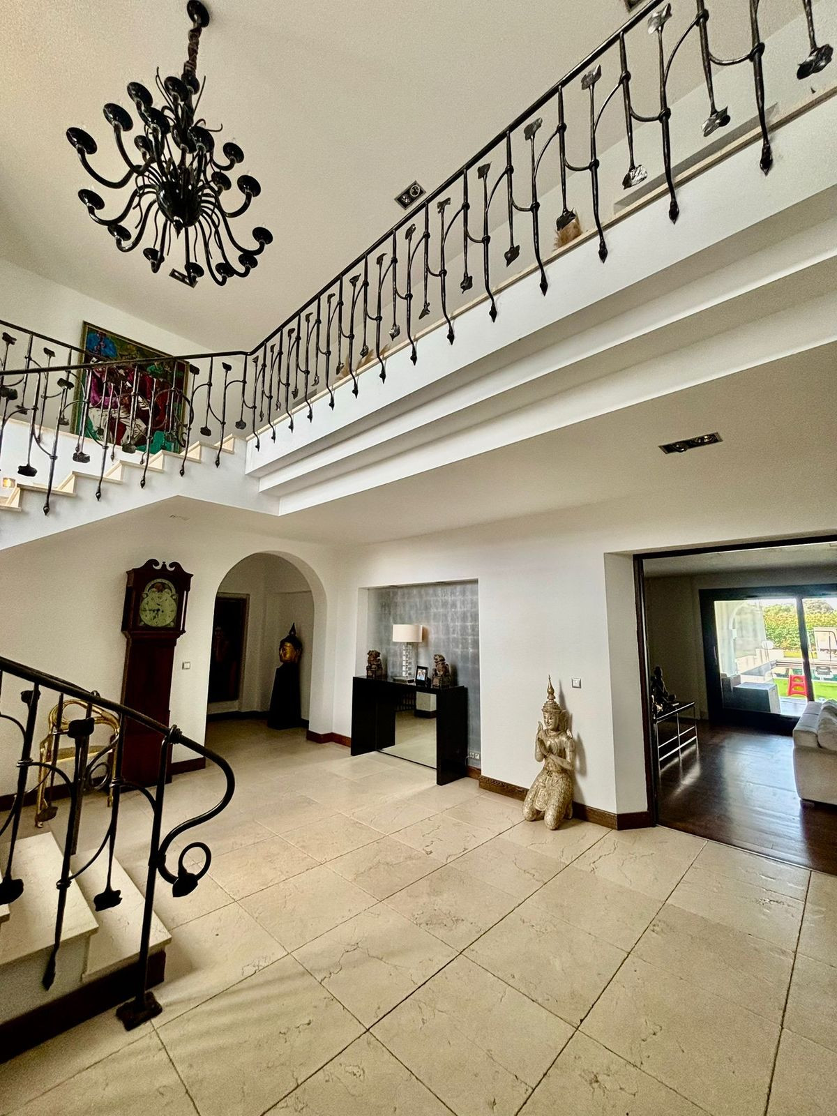 Stunning villa located in the prestigious San Roque Club urbanization, one of the best golf courses in Andalusia, with private access and 24-hour security, including a guardhouse and security officer throughout the development. This magnificent villa boasts unobstructed views of the golf course and mountains. Situated on a 2,250 m² plot with a 600 m² built area, it is distributed over three floors. It comprises six spacious bedrooms, each with an en-suite bathroom and dressing room. One of the bedrooms also features a Turkish bath. The grand living room is spectacular, opening onto the garden and swimming pool. The immense kitchen is equipped with luxurious details and Miele appliances. The dining room is conveniently located adjacent to the kitchen, and there is also a large room dedicated to an exclusive wine cellar. A separate apartment with its own kitchen is also included on the ground floor. The garden area features a chill-out zone, a pool table, a dining area, a barbecue, a fully enclosed gym, and an enormous 12x6 meter swimming pool! At the rear, there's a closed garage for two cars and additional parking space outside but still within the private property. This villa also features underfloor heating and a Sonos sound system. Your dream villa is available for viewing.