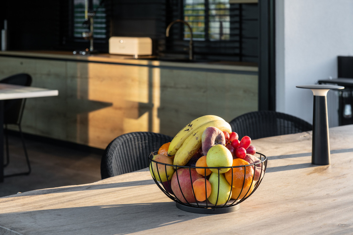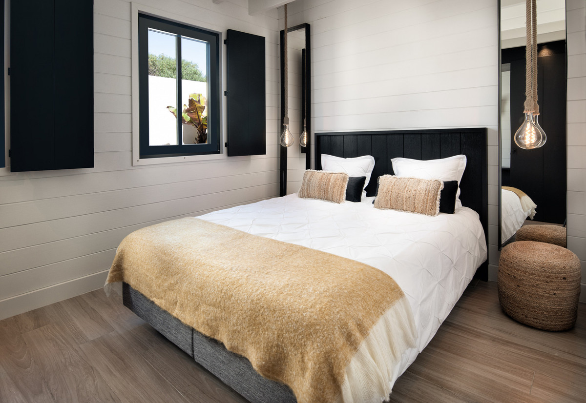 Inside, the villa impresses with its luminous volumes, refined finishes, and contemporary comfort. It offers 4 bedrooms (three of them with double beds) and 3 modern bathrooms with walk-in showers. The house is perfectly suited for families and guests, including young children, thanks to dedicated equipment such as a baby bed, high chairs, safety gates, changing table…