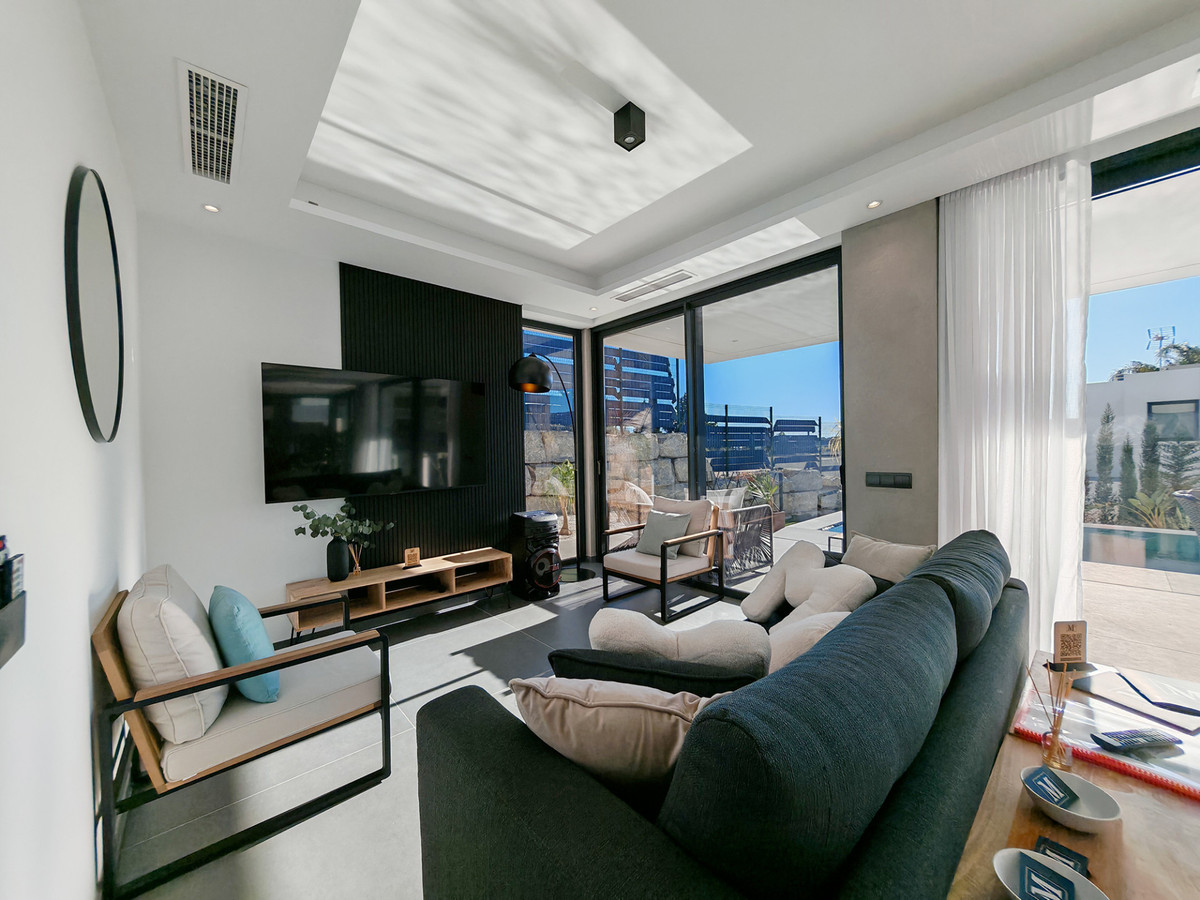 Villa for sale in Valle Romano, Estepona with 4 bedrooms, 3 bathrooms, 1 on suite bathroom, 1 toilet and with orientation west, with private swimming pool, private garage (1 parking spaces) and private garden. Regarding property dimensions, it has 316 m² built and 495 m² plot. Has the following facilities amenities near, transport near, air conditioning, fully furnished, fully fitted kitchen, basement, guest room, alarm, brand new, guest toilet, kitchen equipped, living room, country view, mountain view, golf view, heated pool, automatic irrigation system, smart home system, laundry room, internet - wi-fi, covered terrace, fitted wardrobes, garden view, pool view, underfloor heating (bathrooms), close to sea / beach, close to golf, uncovered terrace, glass doors, open plan kitchen, close to shops, close to town, close to port, close to schools and surveillance cameras.