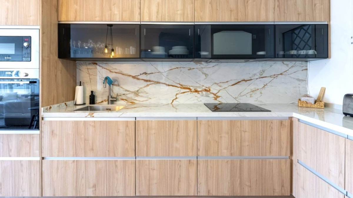 The apartment is laid out over two levels. On the ground floor, you are welcomed by an expansive open-plan living space, featuring a fully equipped modern kitchen with sleek cabinetry, new appliances taht flows seamlessly into the living and dining area, enhanced by floor-to-ceiling sliding glass doors that open onto a balcony with panoramic views. A guest toilet completes the first floor.