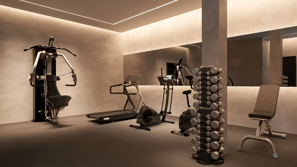 The home is spread over three levels and includes a luxury spa with indoor heated pool, Finnish sauna, Turkish bath, a fully equipped gym, games room, bar, and wine cellar. Two glass cubes and floor-to-ceiling windows create bright, open spaces filled with natural light.