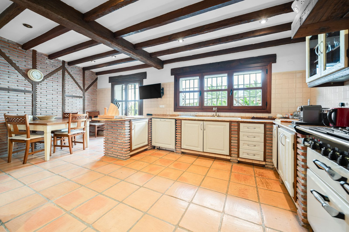 The villa is in excellent condition and captivates with its authentic Andalusian character: beautiful wooden beams, brick and stone details, and an elegant rustic finish that creates a warm and inviting atmosphere.